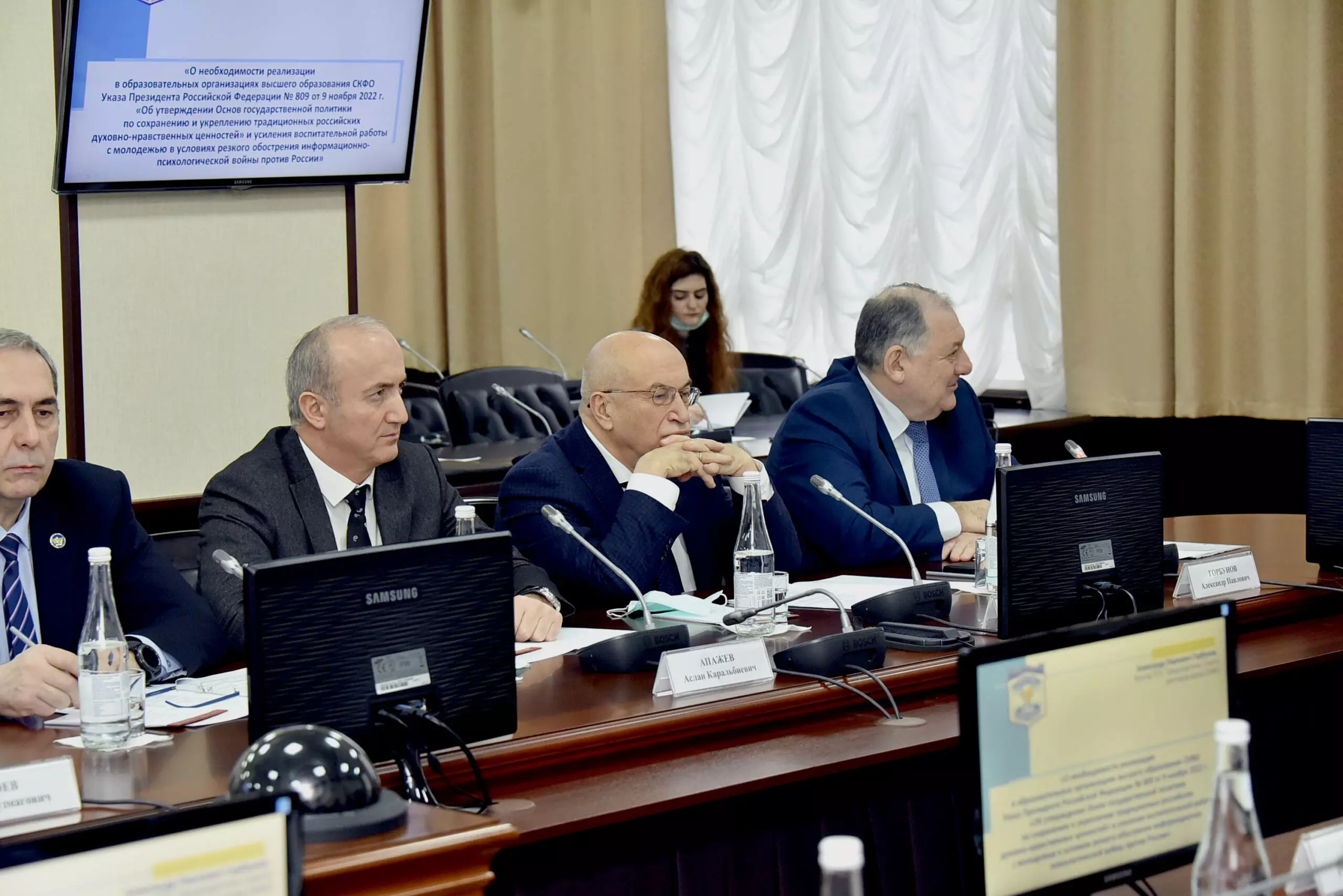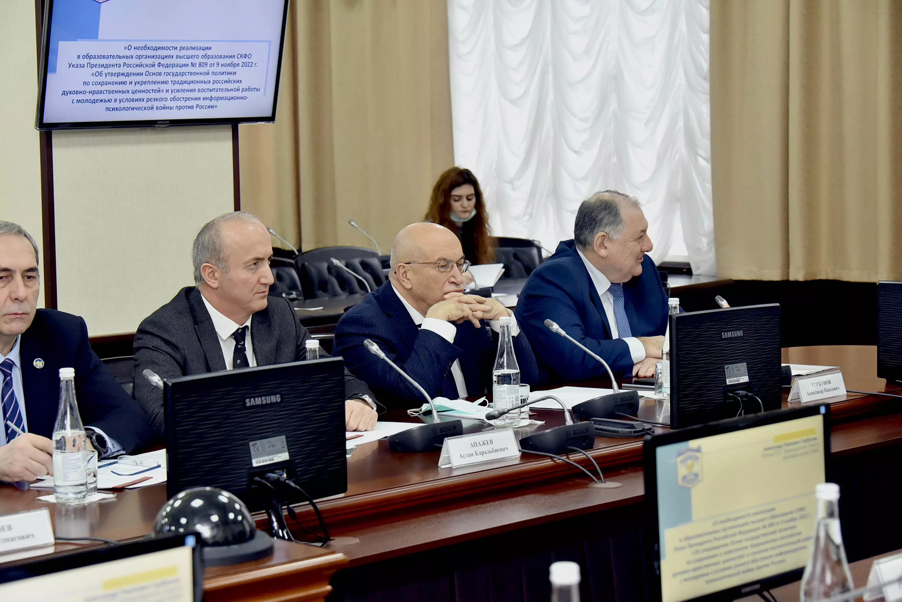 Ректор Пятигорского государственного университета, председатель Совета ректоров вузов СКФО Александр Горбунов выступил с докладом о необходимости реализации в вузах СКФО Указа Президента Российской Федерации № 809 от 9 ноября 2022 года «Об утверждении Основ государственной политики по сохранению и укреплению традиционных российских духовно-нравственных ценностей» и усиления воспитательной работы с молодежью в условиях резкого обострения информационно-психологической войны против России».