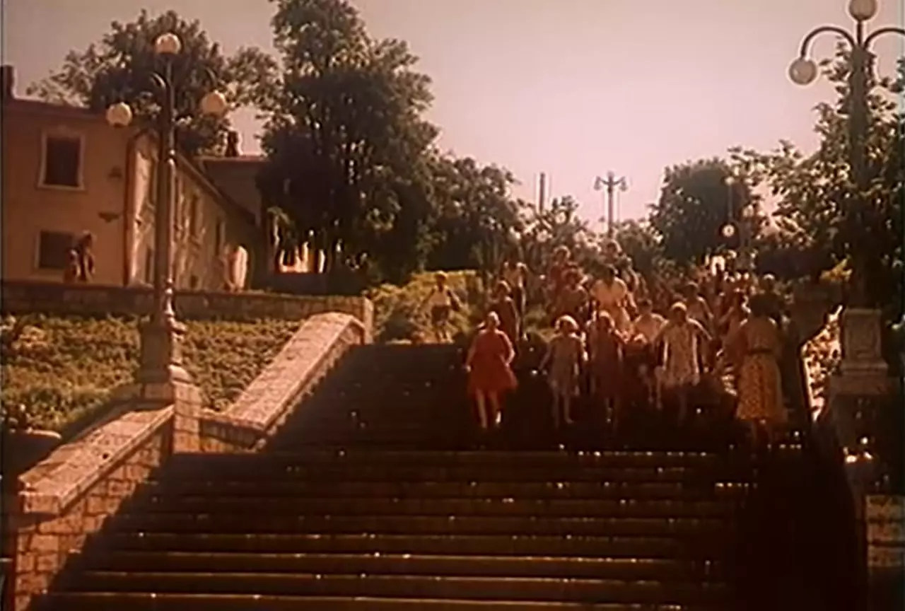 Ну, а кто не разобрался, подсказываем. Само «КУКУ» располагалось в нынешнем здании Центральной городской библиотеки на улице Красноармейской. В объективе камеры появлялись: железнодорожный вокзал и привокзальная площадь, Колоннада, проспект Дзержинского ниже Каскадной лестницы, есть кадры электросекции СР-3 (электрички).