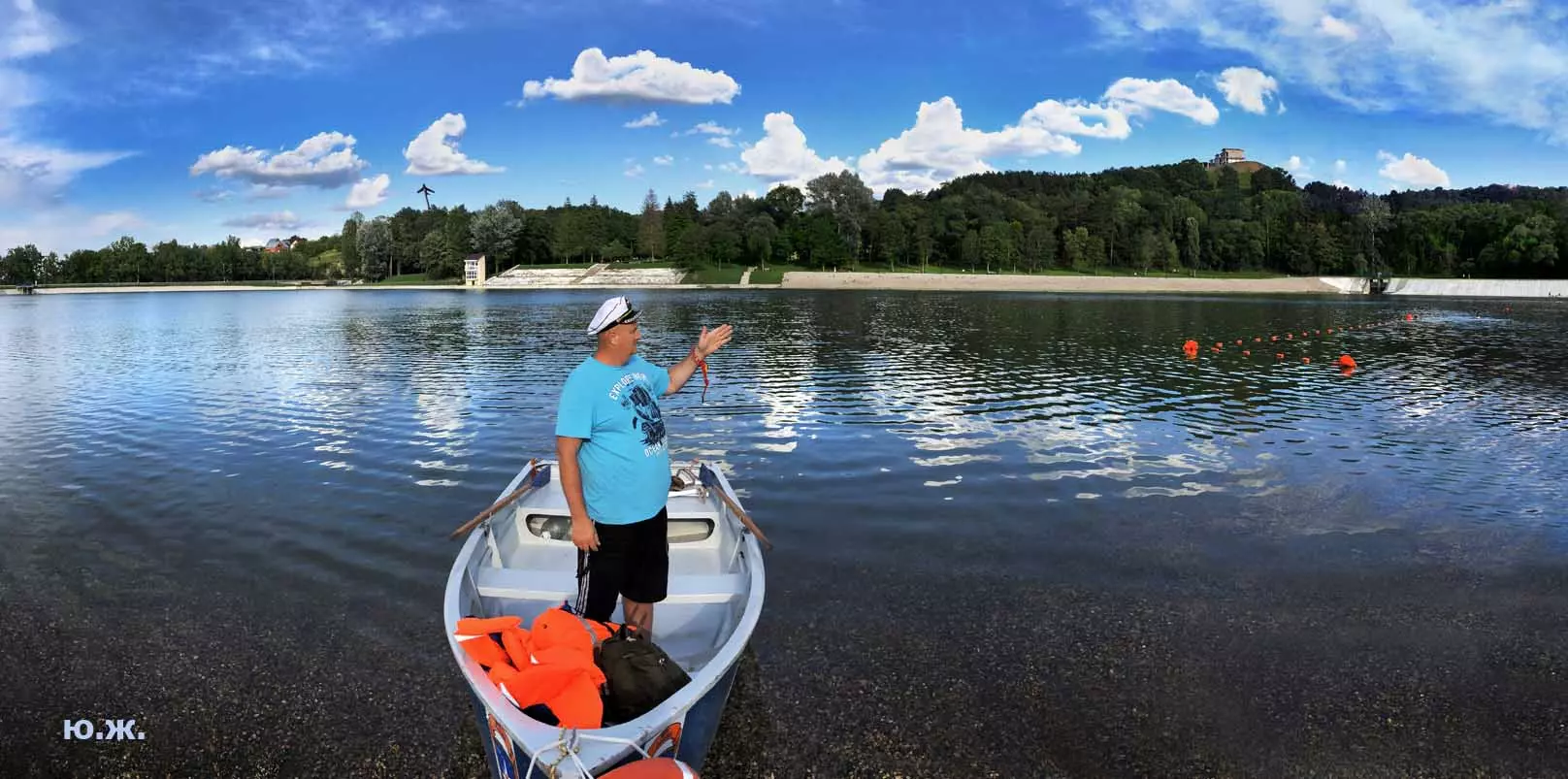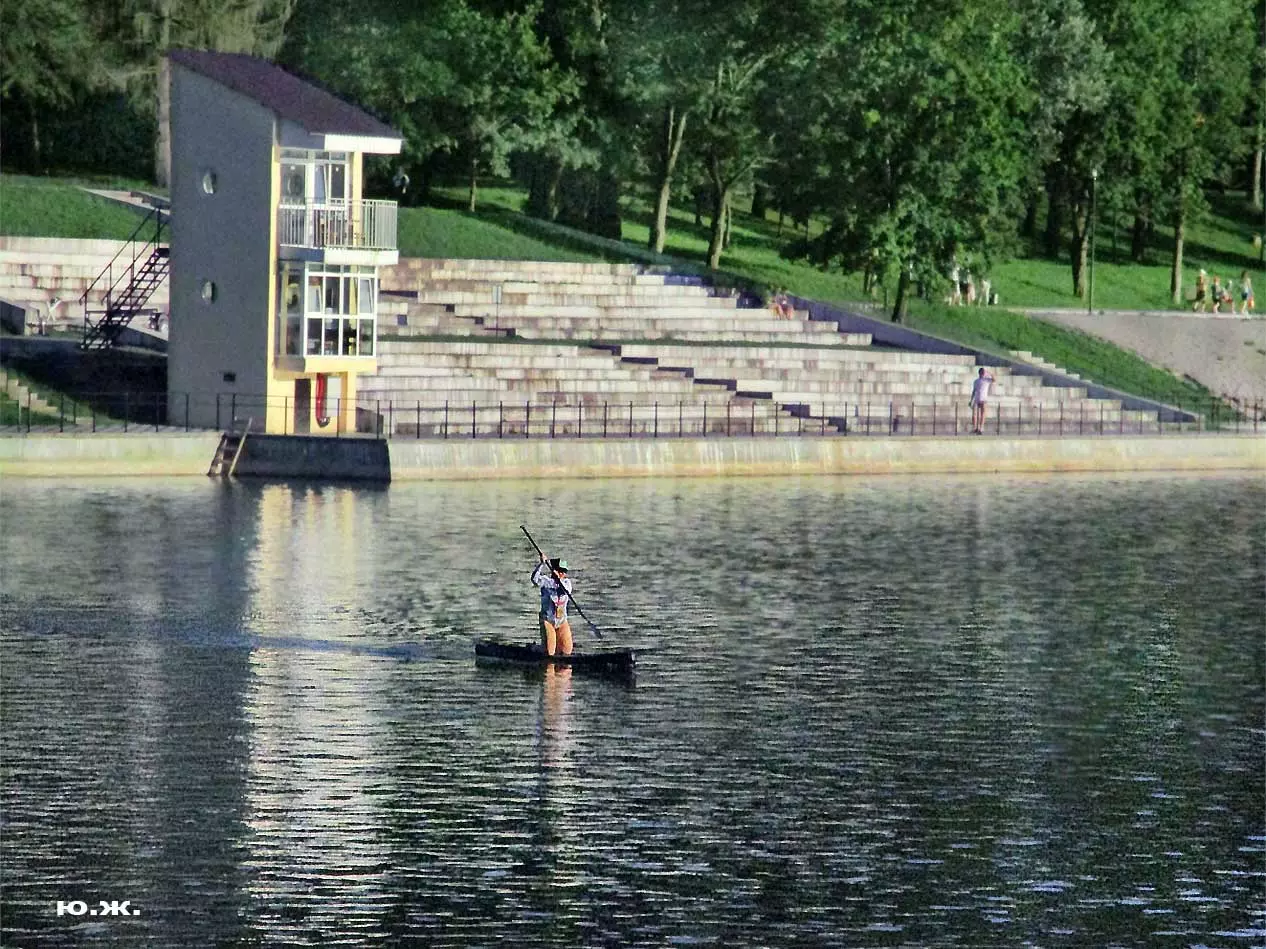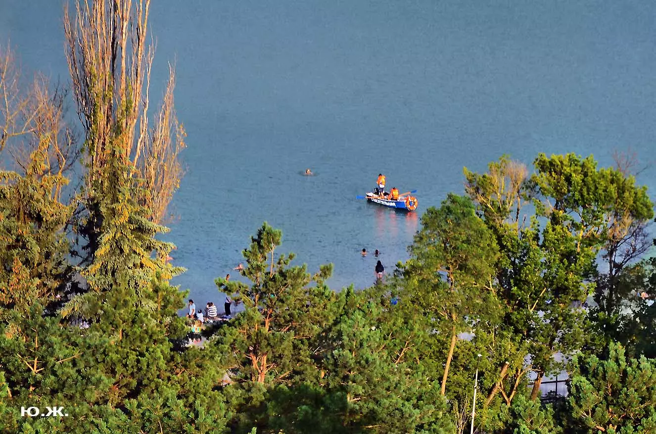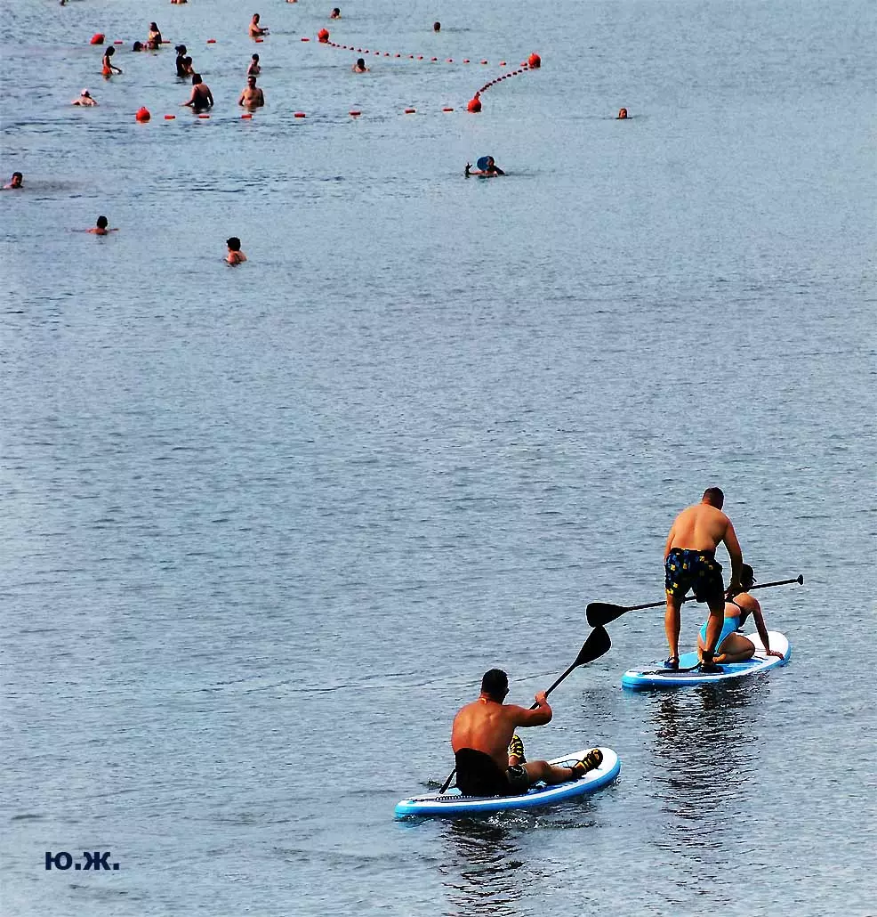 И даже это малое — вода Аликоновки и допуск к ней и ее берегам через целые двадцать лет, сделали лица пришедших радостными и просветленными. Многочисленные указатели напоминают: плавать можно вдоль берега, а тех, кто дерзит и удаляется от него, догоняет моторка, пусть даже это будут мастера спорта…(см. фото). Наверное, на следующий год будет свободнее. Сейчас процентов семьдесят чаши озера пустует. Хотя первого августа я с удовольствием фотографировал людей, плавающих на сапбордах, досках-лодках с одним веслом, и одетых в яркие спасательные жилеты, и они плавали поперек озера (см. фото). Прогресс. Будем ждать большего от августа.