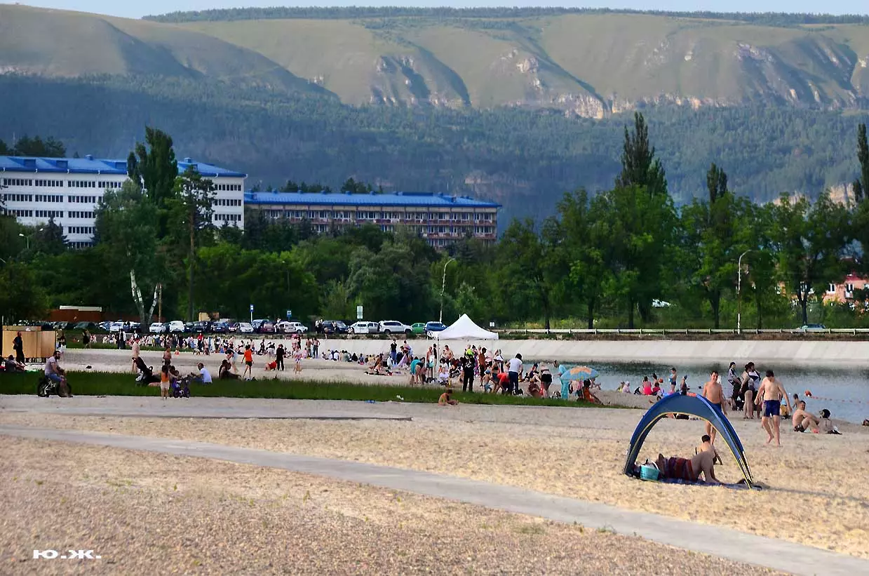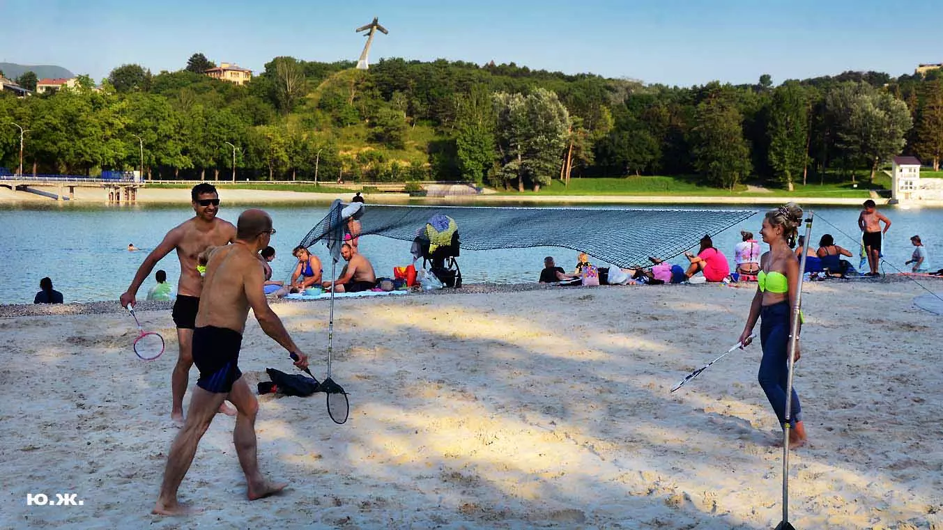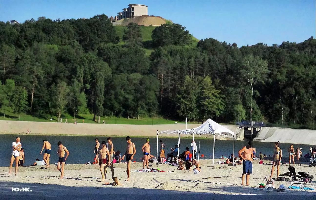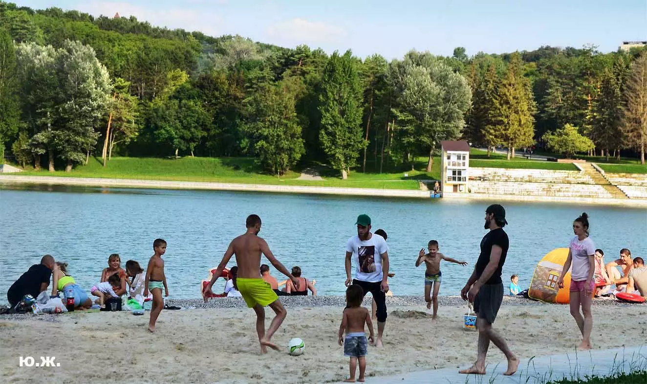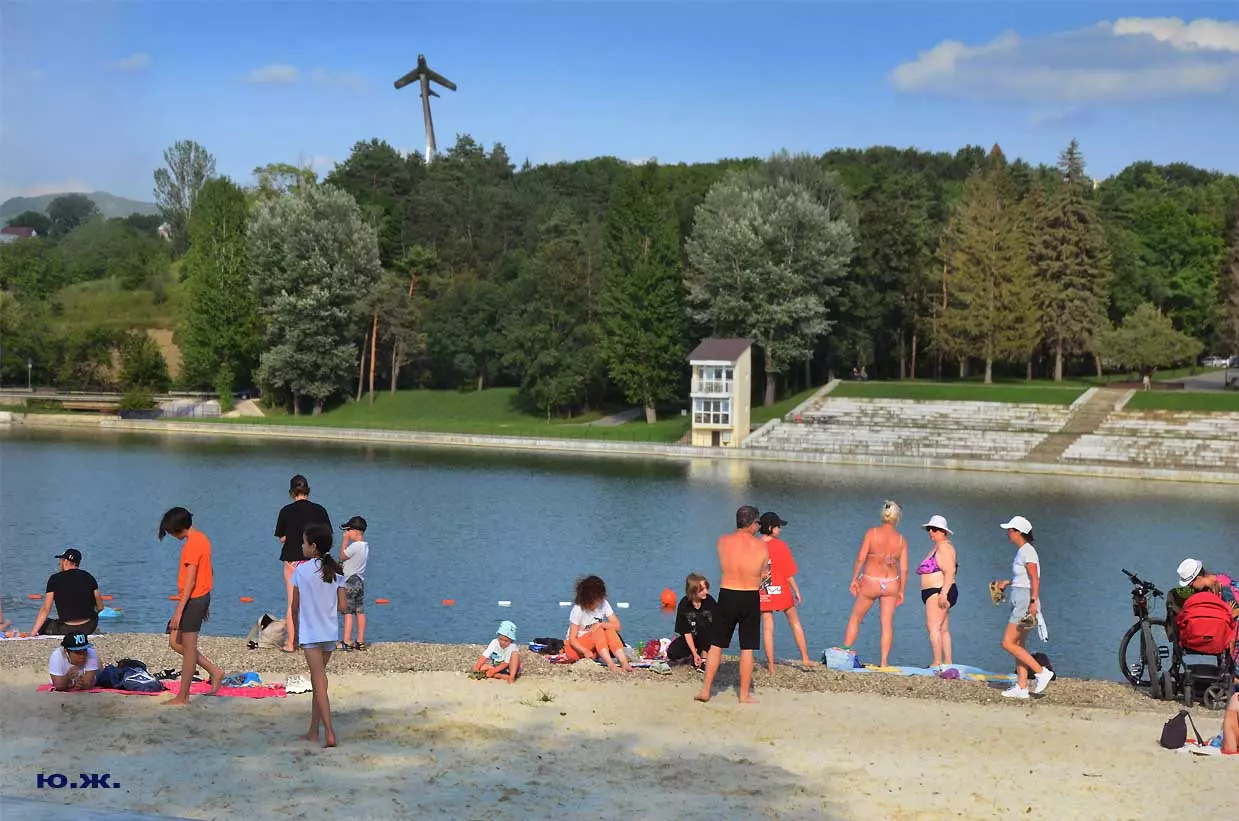 С восточной стороны, кстати, самой обустроенной, находится давно построенное красивое светлое здание охраны, чуть выше уже разбит живописный сквер, а еще раньше построены большие в виде ступеней места, сейчас использующиеся людьми для принятия солнечных ванн. Они так же начинают заполняться, хотя купание с этой стороны по-прежнему запрещено, и многие используют вымощенные плиткой довольно длинные дорожки для прогулок, иногда и вокруг озера. А само оно прекрасно. Лучшие виды на это красивейшее, хоть и небольшое озеро, открываются с окрестных гор.