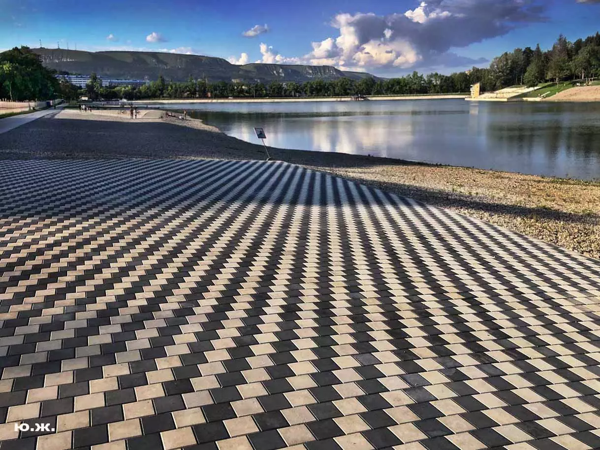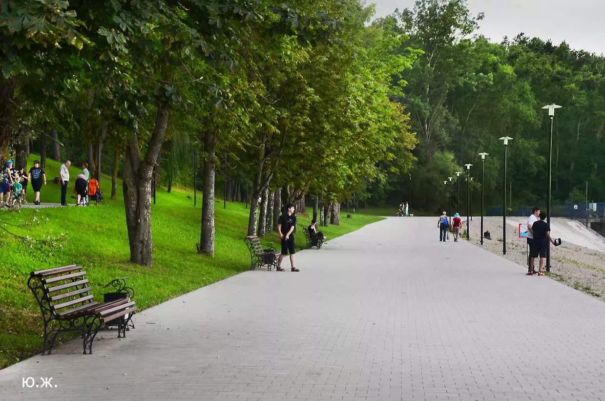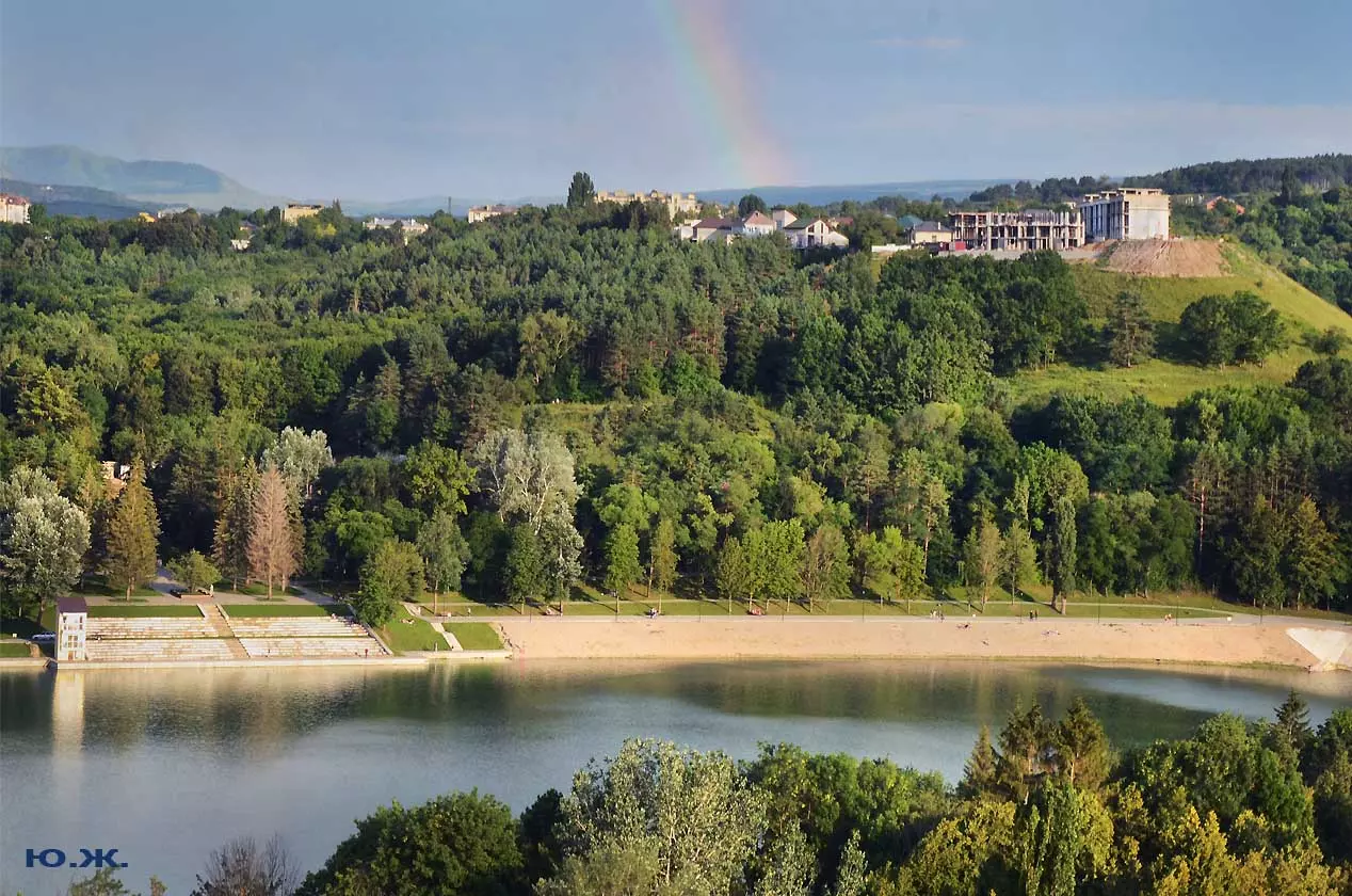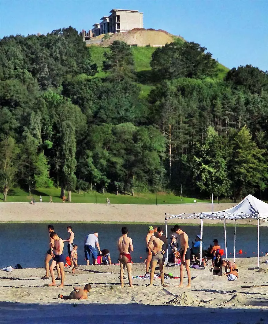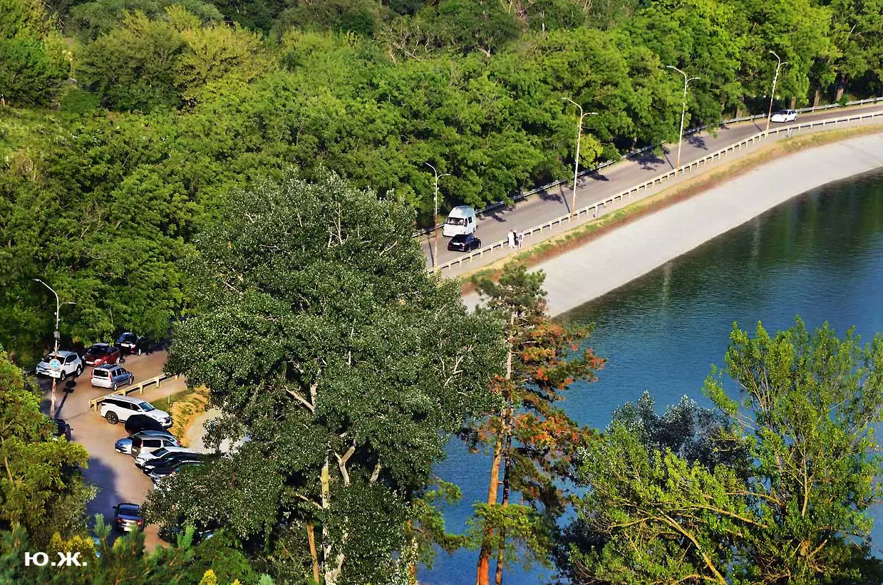 С восточной стороны, кстати, самой обустроенной, находится давно построенное красивое светлое здание охраны, чуть выше уже разбит живописный сквер, а еще раньше построены большие в виде ступеней места, сейчас использующиеся людьми для принятия солнечных ванн. Они так же начинают заполняться, хотя купание с этой стороны по-прежнему запрещено, и многие используют вымощенные плиткой довольно длинные дорожки для прогулок, иногда и вокруг озера. А само оно прекрасно. Лучшие виды на это красивейшее, хоть и небольшое озеро, открываются с окрестных гор.