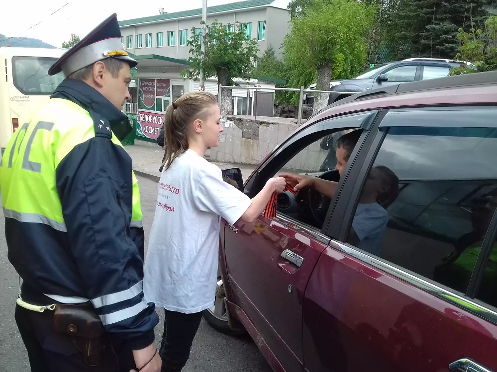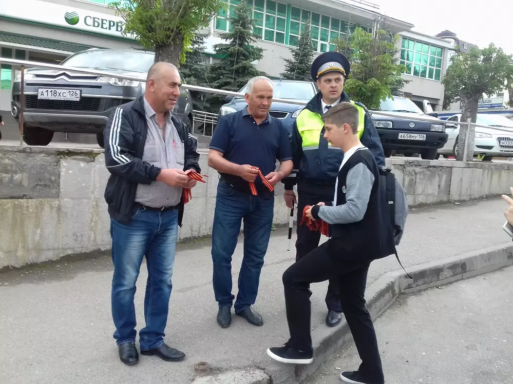 7 мая сотрудники ОГИБДД ОМВД России по г. Кисловодску при участии членов центра молодежи организовали проведение акции «Георгиевская ленточка».