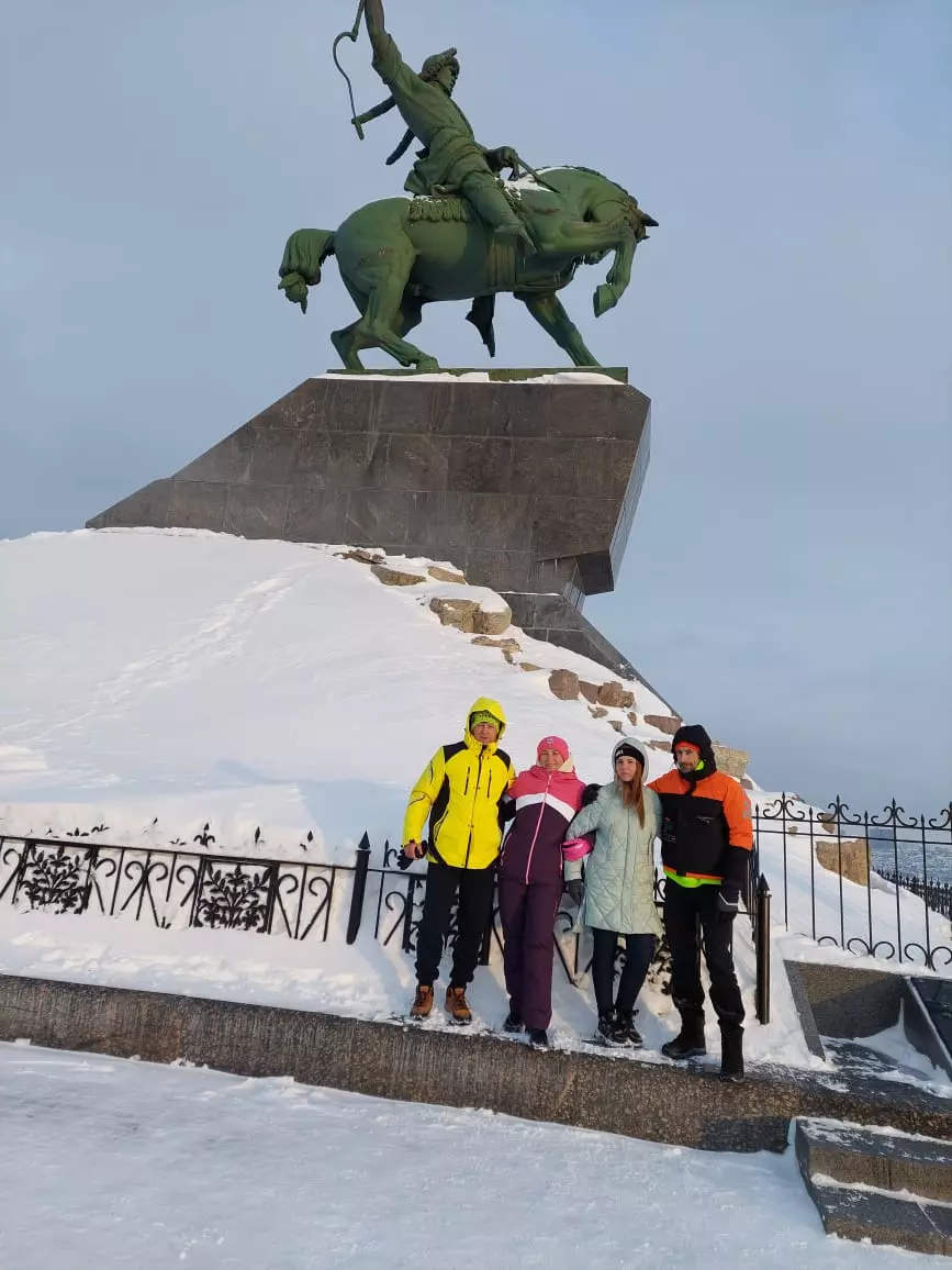 Участники автопробега посетили в Уфе грандиозный памятник Салавату Юлаеву — национальному герою Башкирии. Памятник весит около 9 тонн и держится только на трёх опорах.