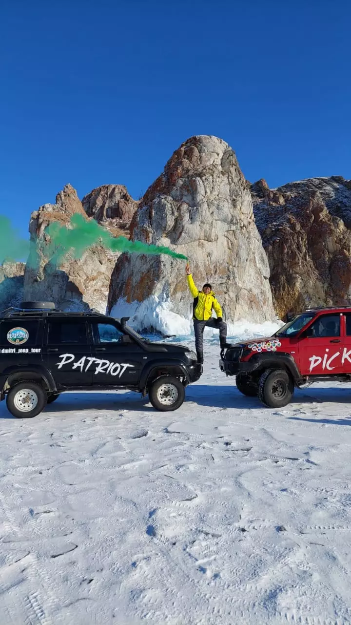 Когда экипажи выезжали на берег озера, сами машины противились этому, так как на льду Патриоты были лёгкими, как пёрышки, а здесь на земле, буксовали от земного притяжения. Наши путешественники испытали словно настоящую невесомость от простирающегося «космоса» — озера Байкал! Красочно документируют рассказ Дмитрия фотографии зимних пейзажей Байкала — каким гордым предстал он перед ребятами!
