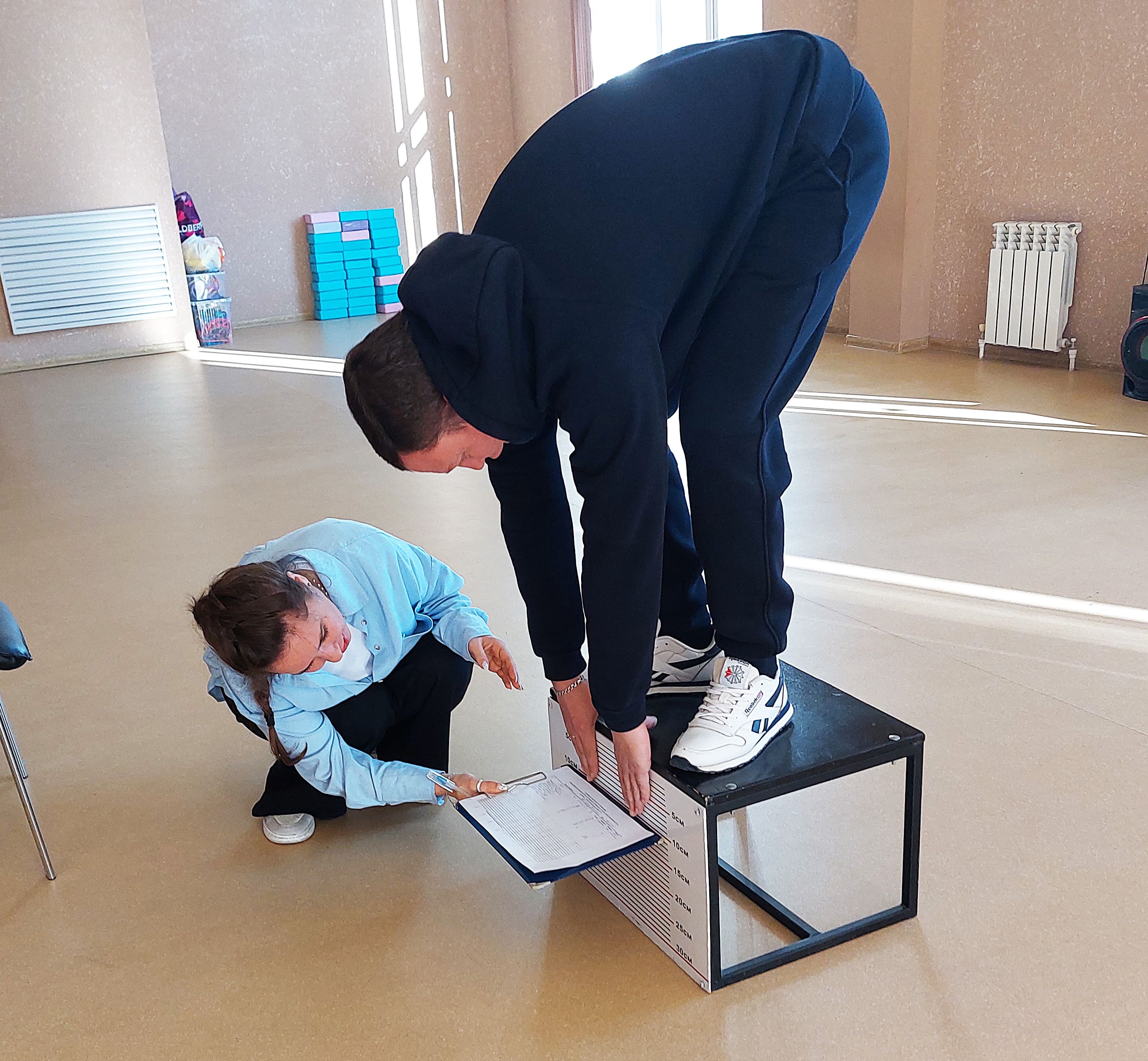 Тест на гибкость сдавали все без исключения. Его лично принимала начальник городского Центра тестирования ГТО Валерия Сергеевна Джанаева
