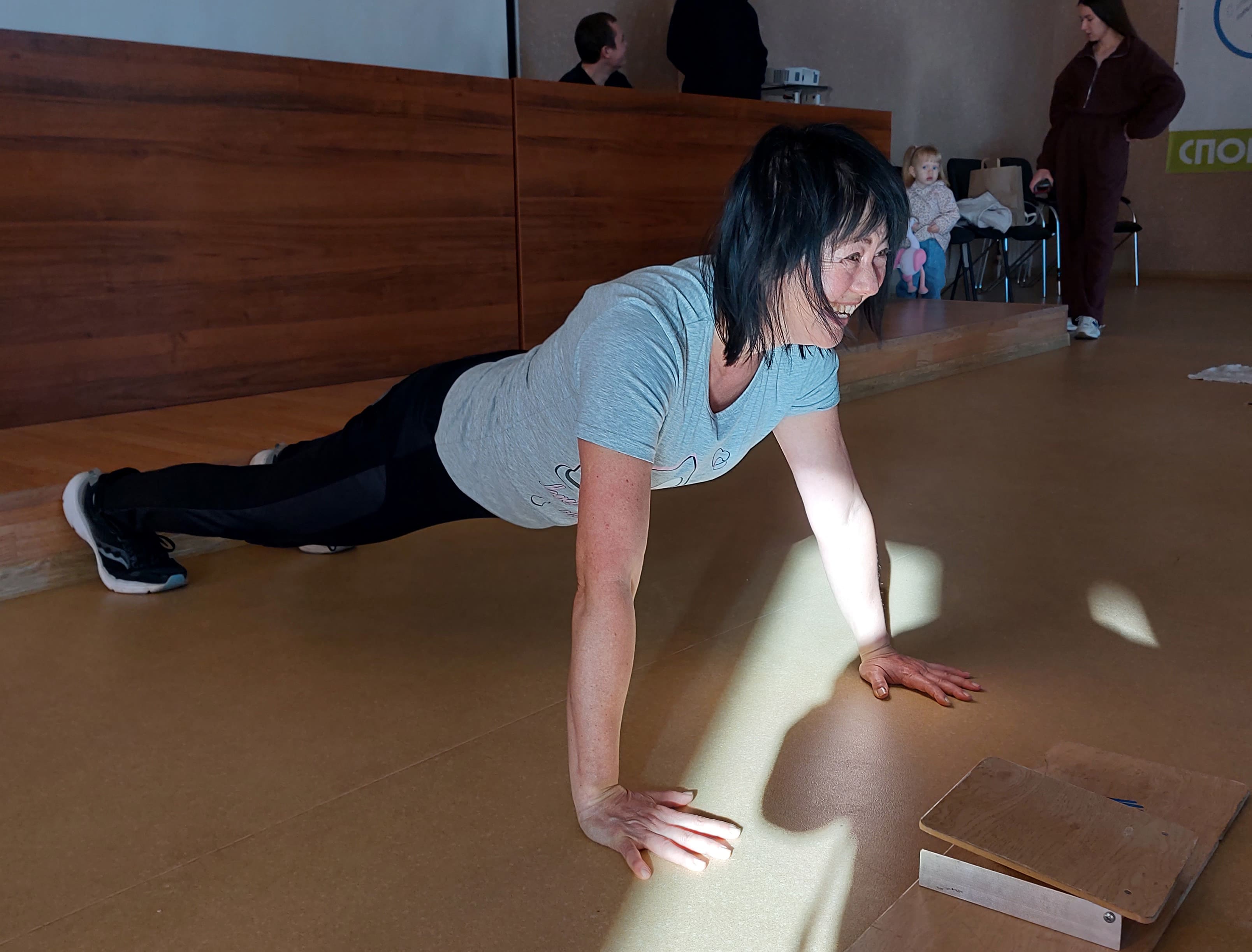 При нормативе для её возрастной категории 8 повторений 58-летняя психолог Инна Наталуха отжалась от пола 19 раз
