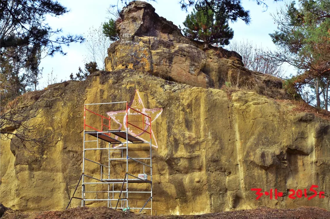 На Серых камнях в парке существует барельеф, которому в этом году исполняется 80 лет: в 1935 году он был сделан немецкими интернационалистами, отдыхавшими в кисловодских санаториях. Долгие годы барельеф был скрыт многолетними зарослями, а около месяца назад его очистили. Гуляющих в парке горожан взволновало появление на нем строительных лесов и нанесение покрытия, похожего на краску, которая может нарушить общую гармонию ландшафта. Неужели Серые камни решили покрасить? Как известно, кисловодским властям не чужда подобная безвкусица: красится же ежегодно в розовый цвет мемориал Воинской славы на ул.Цандера – один из лучших в регионе КМВ памятник, в соответствии с авторской идеей братьев Роберманов вырубленный как бы из монолитной глыбы. Он был и должен быть монохромным, цвета камня, однако «дизайнеры» из ЖКХ решили придать ему глупый поросячий оттенок. Но для федерального собственника парка, по мнению Юрия Жванко и наших общественных корреспондентов, такое недопустимо.
