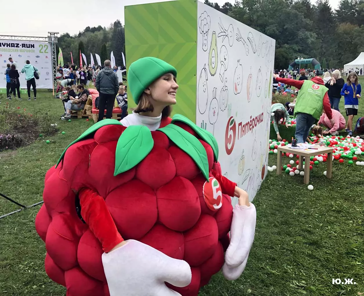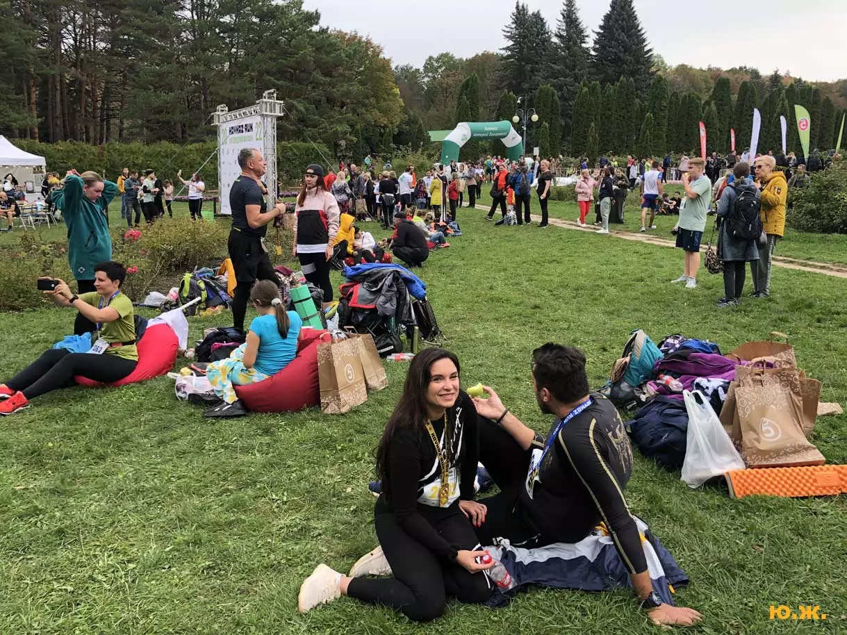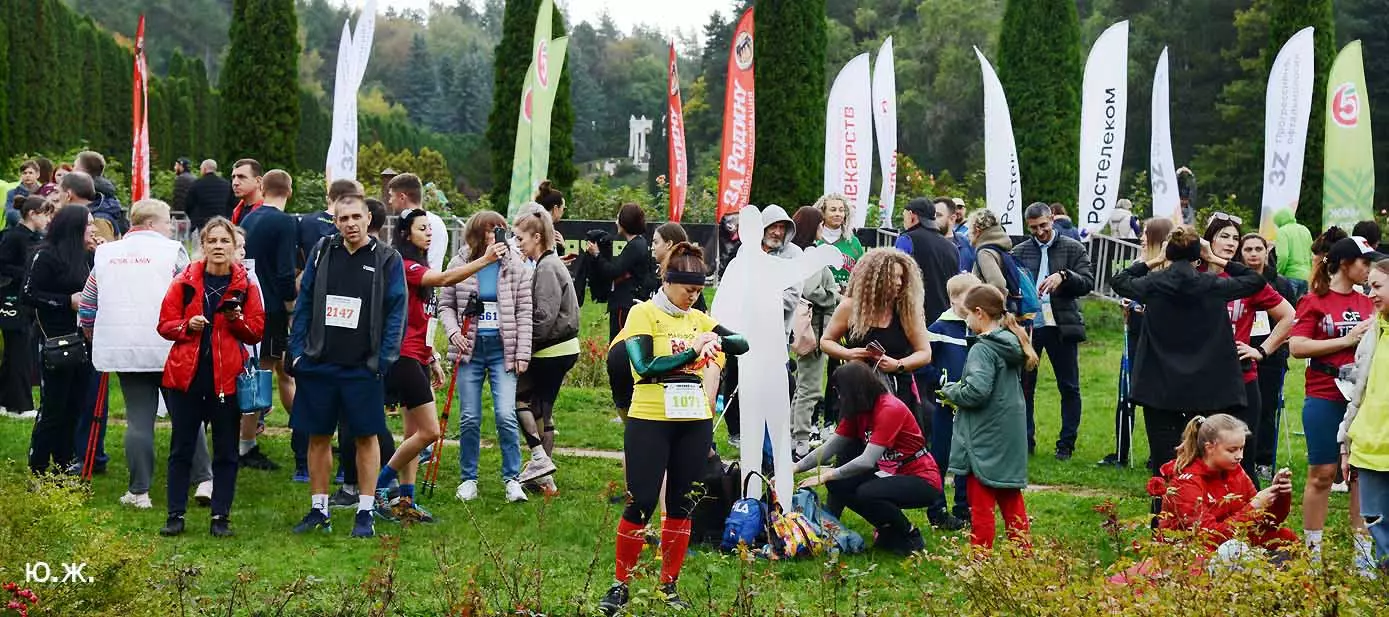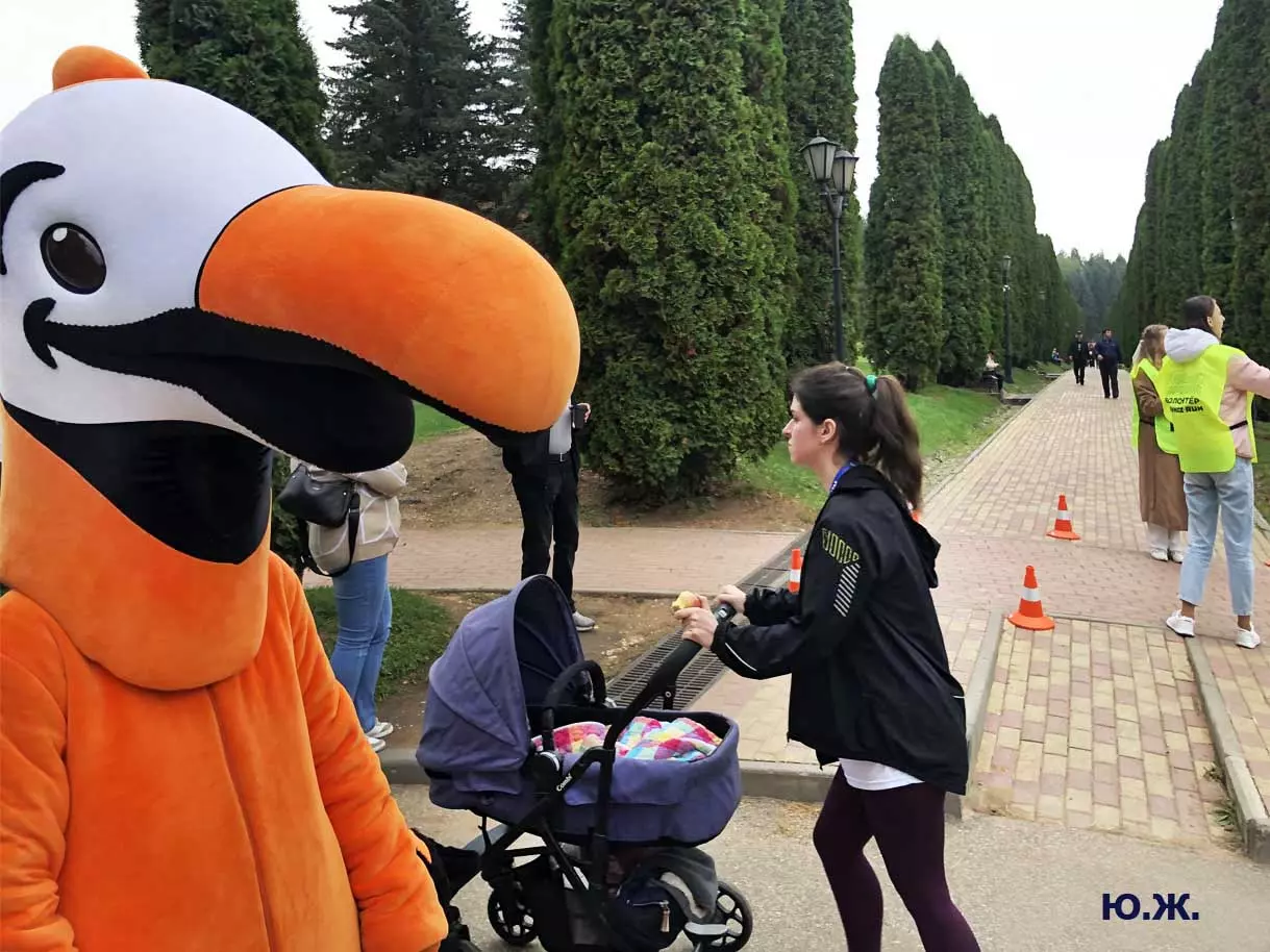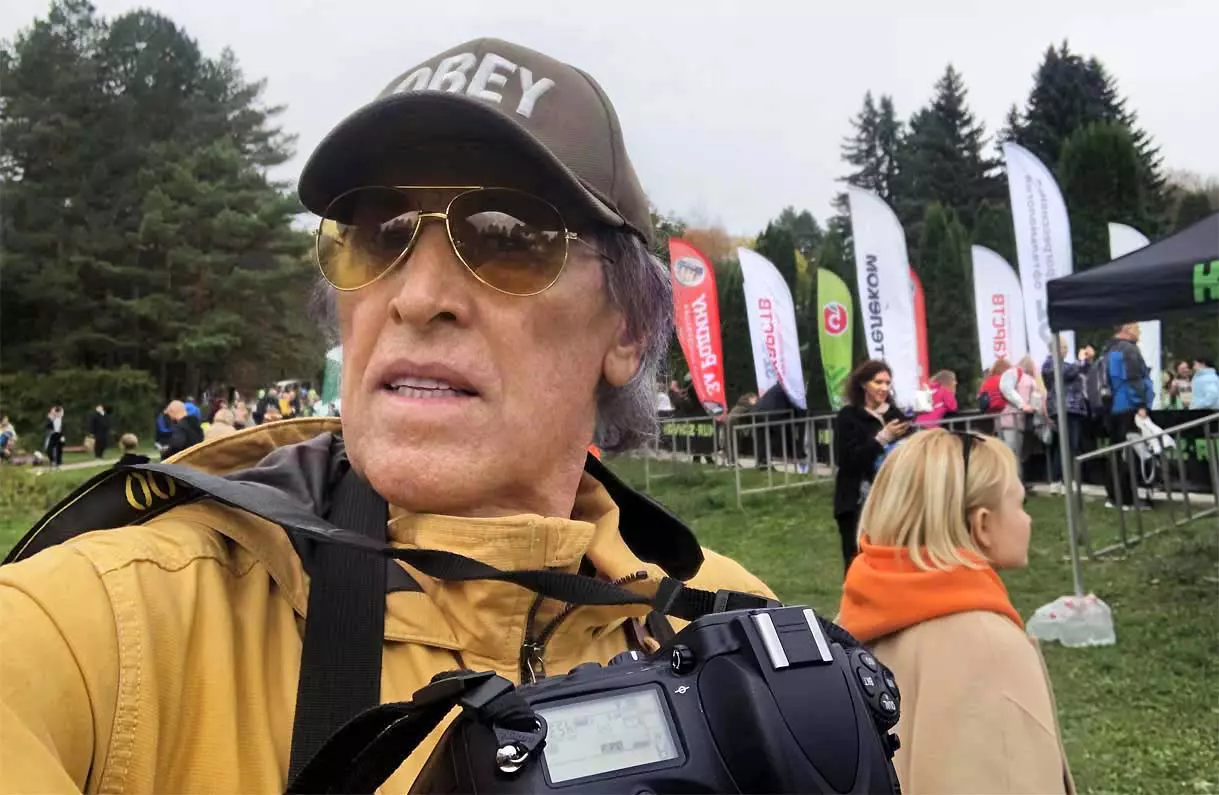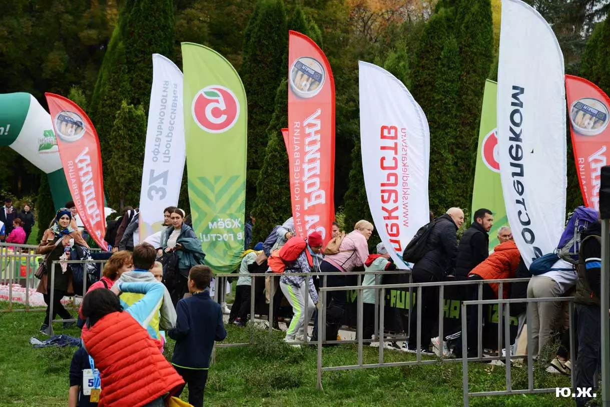 Всегда начинаю осмотр живописного палаточного городка сверху, с обзорной белоснежной беседки. Отсюда открывается прекрасный вид на царицу парка — красавицу Долину роз, откуда и стартуют марафонцы. Иногда на восток, иногда на запад. Рассматриваю и снимаю палатки, яркие рекламные шары, бутики, маленькие кафешки, ярко одетых участников марафона, многочисленных зрителей… Смотрю в сторону Эльбруса, который, к сожалению, в дни соревнований (вторые выходные октября) показывается реже. За все годы марафона был только один из четырех дней соревнований, когда он нас порадовал — в 2018 году. Я этот снимок сегодня прикрепляю к новым фото.