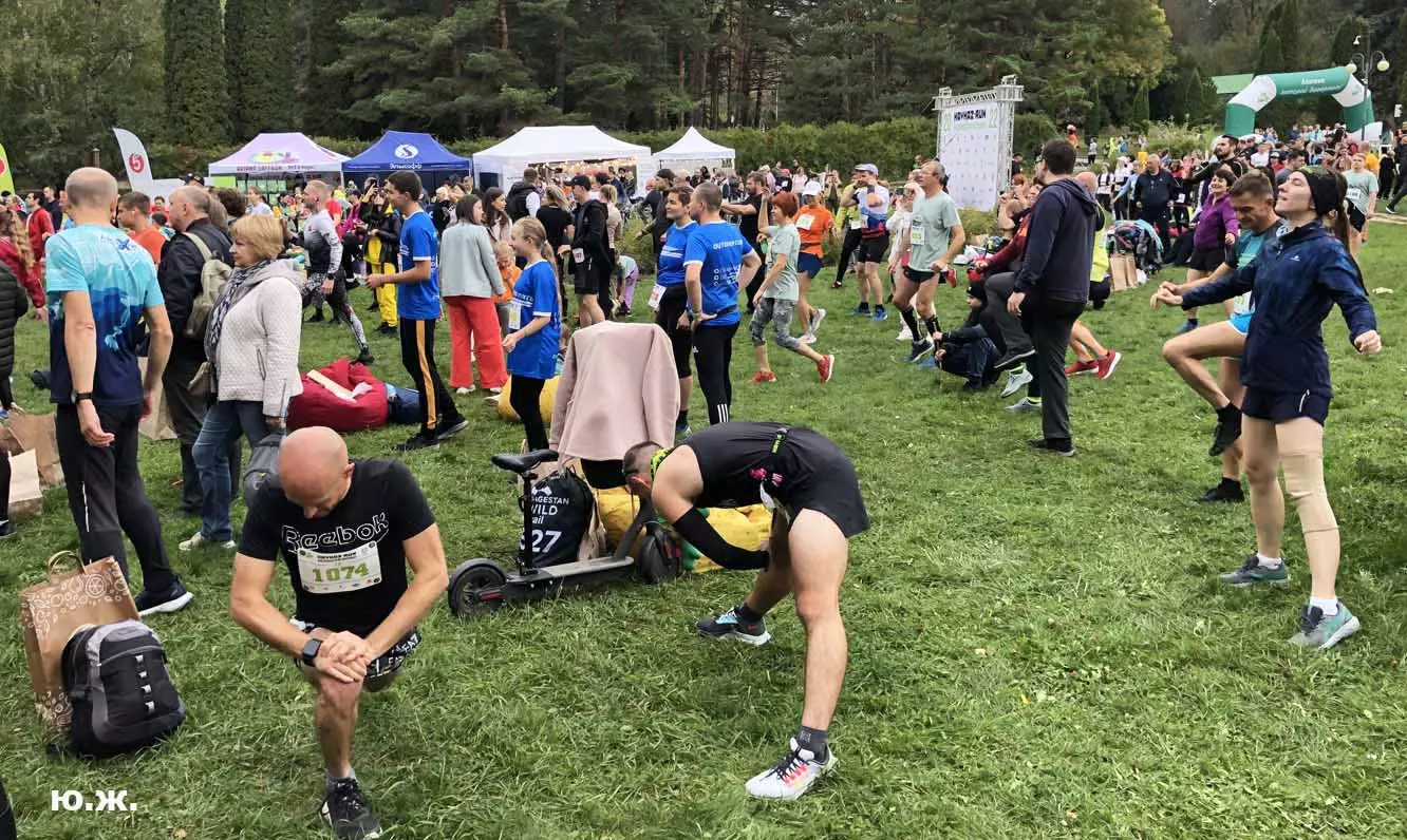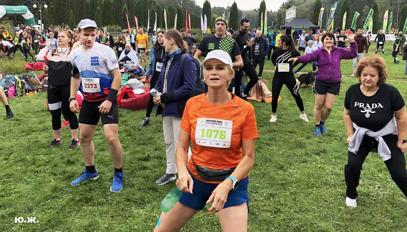 Под музыку проходит разминка, многие лежат на еще зеленой и густой траве — расслабляются, некоторые, лежа на спине, встряхивают ногами, подготавливая мышцы, а есть и те, кто, спринтерски тренируют ускорения…