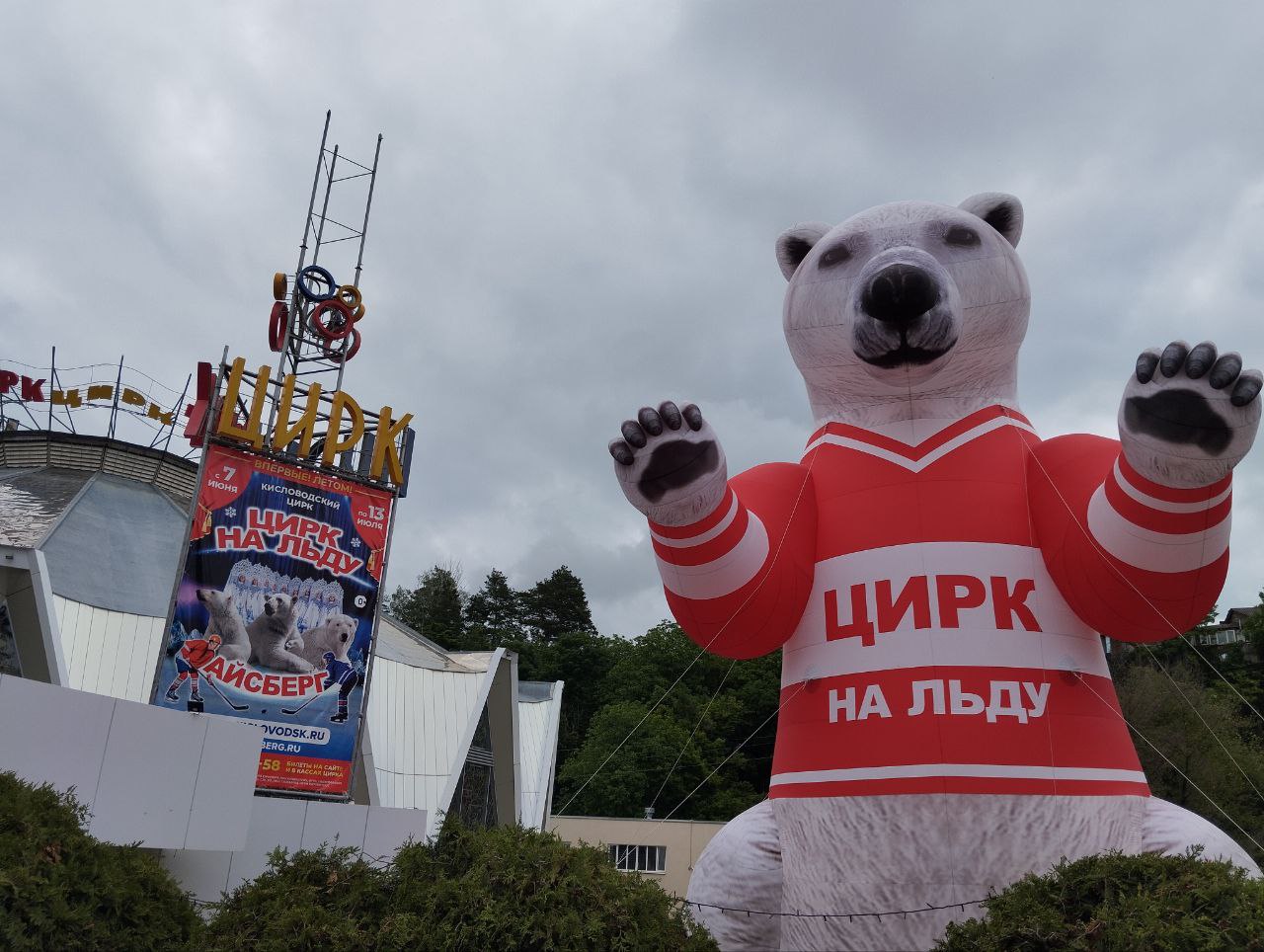 Большого белого медведя на проспекте Победы Кисловодска невозможно не заметить. Его поза и взгляд как будто говорят: «Остановись! Сейчас начнётся самое интересное!». И белый надувной гигант прав. Как можно пройти мимо такого красавца, особенно в День защиты детей. Никак!