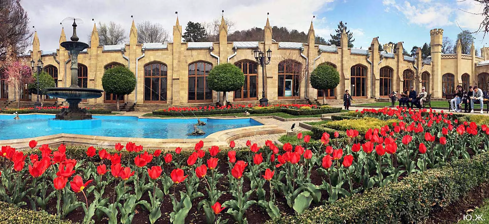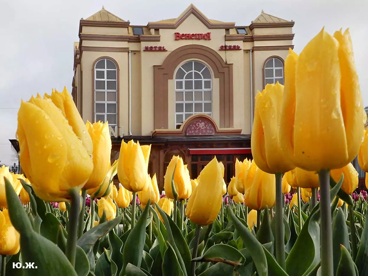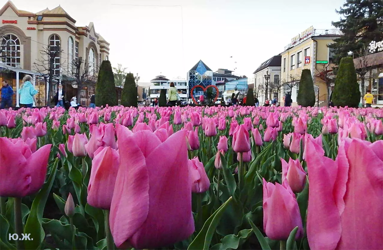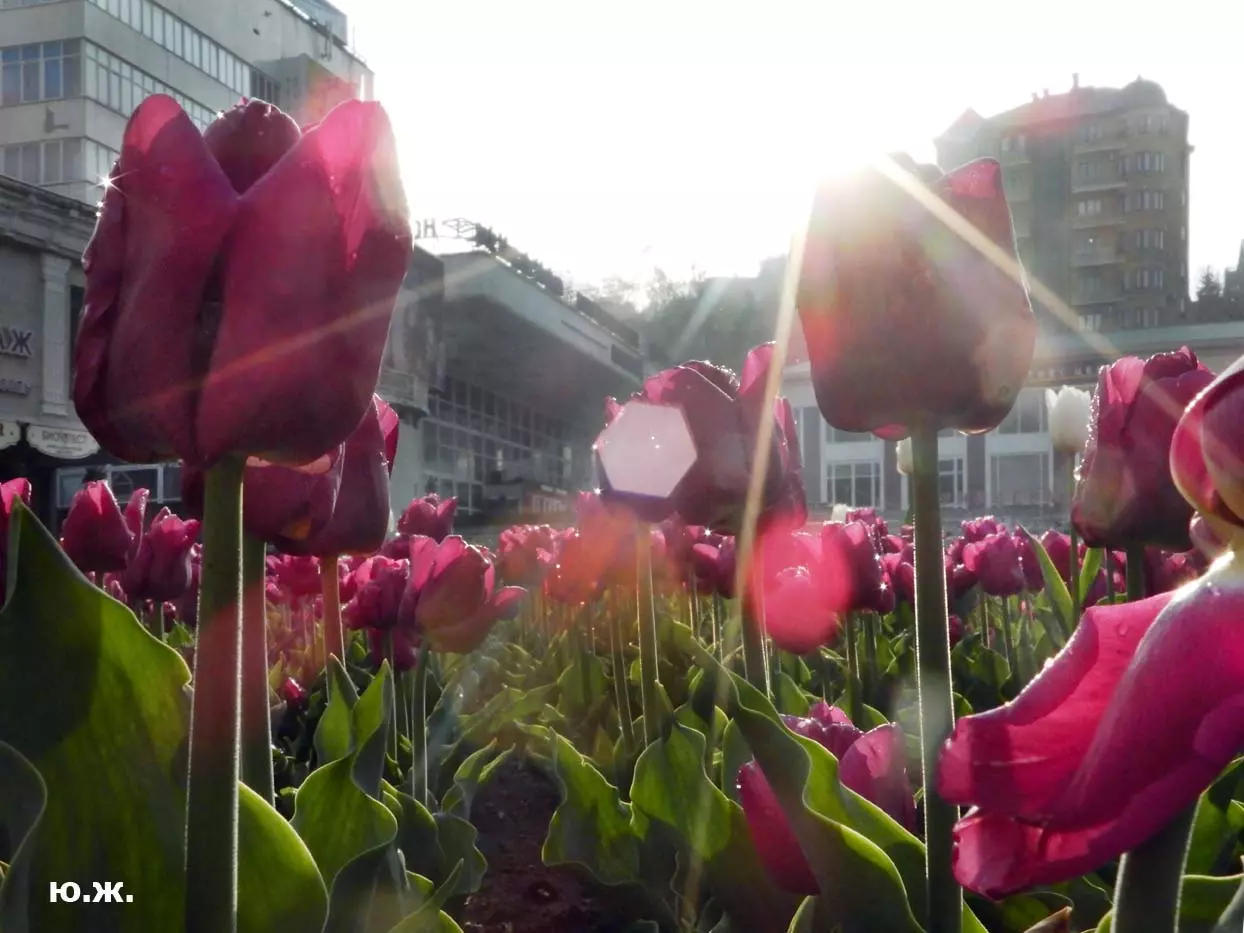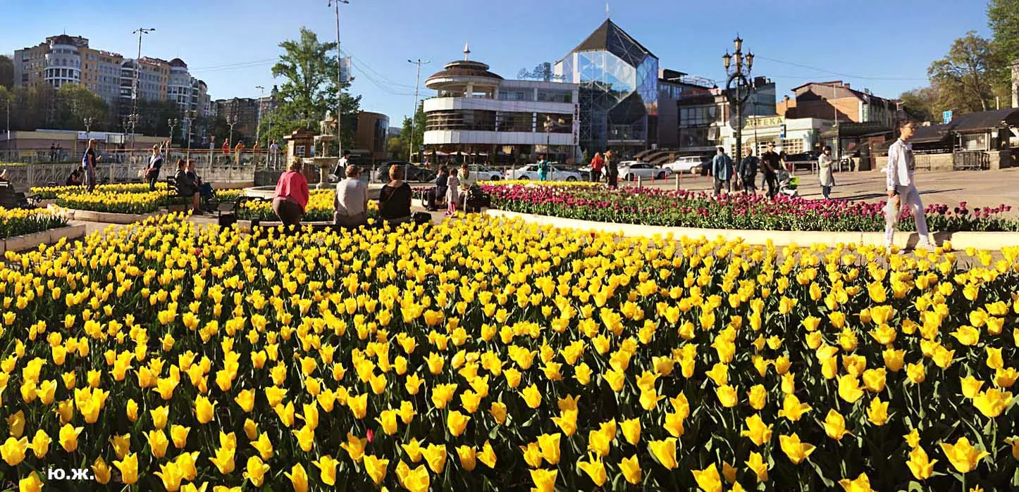 Одни деревья сменяют другие, первое — это время «белой кипени», когда создается такое впечатление, что везде вокруг цветут фруктовые деревья и все белое и нежно-розовое. В конце апреля — начале мая мы любовались впечатляющим цветением крохотного оазиса магнолий, что на Шаляпинском спуске — их крупными белыми, похожими на звезды, цветами. Кстати, в мае выбросило свой единственный очень крупный розовый цветок совсем небольшое деревце магнолии (см. фото). А потом, словно всплеск: зацвели каштаны, сирень, скоро будет акация, каким-то насыщенным ароматом заявила о себе, совсем недавно нежно-голубая глициния — у соседа с первого этажа. А роскошь штучных авторских клумб Курортного бульвара, которые будут всех радовать до глубокой осени и которые нужно воспевать только в стихах! А какими прекрасными ярко-розовыми цветами радуют курортников с их кружками, наполненными богатырским нарзаном, деревья вокруг фонтана «Лягушки»! Сеанс ароматерапии! А вспомните- «Тот цветущий и поющий яркий Май», один день из которого — девятый — мы совсем недавно торжественно отмечали.