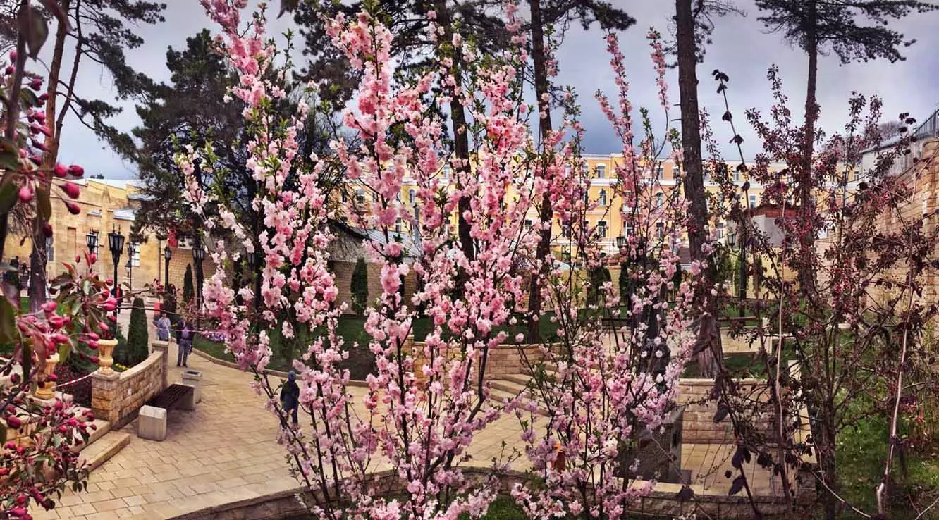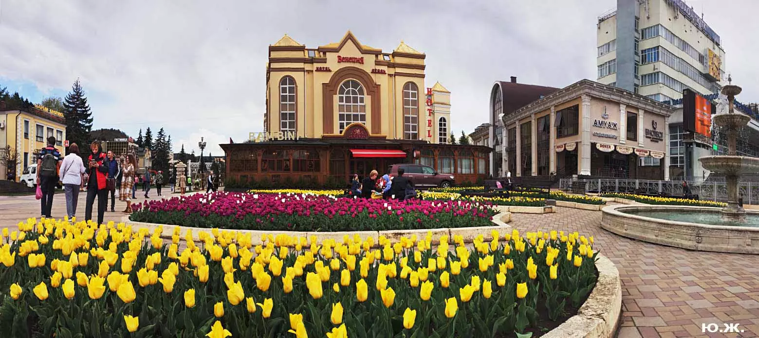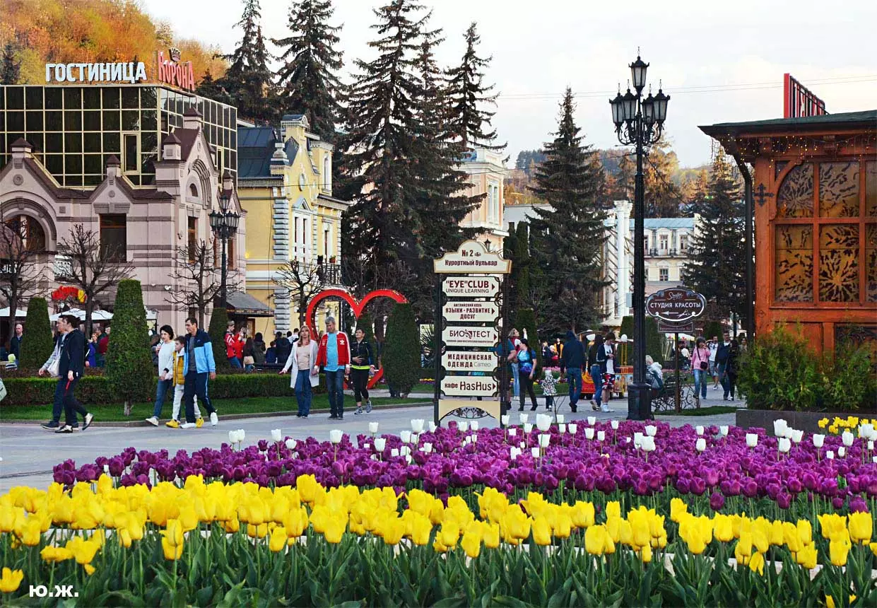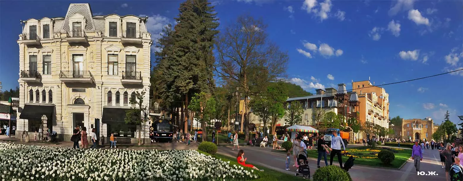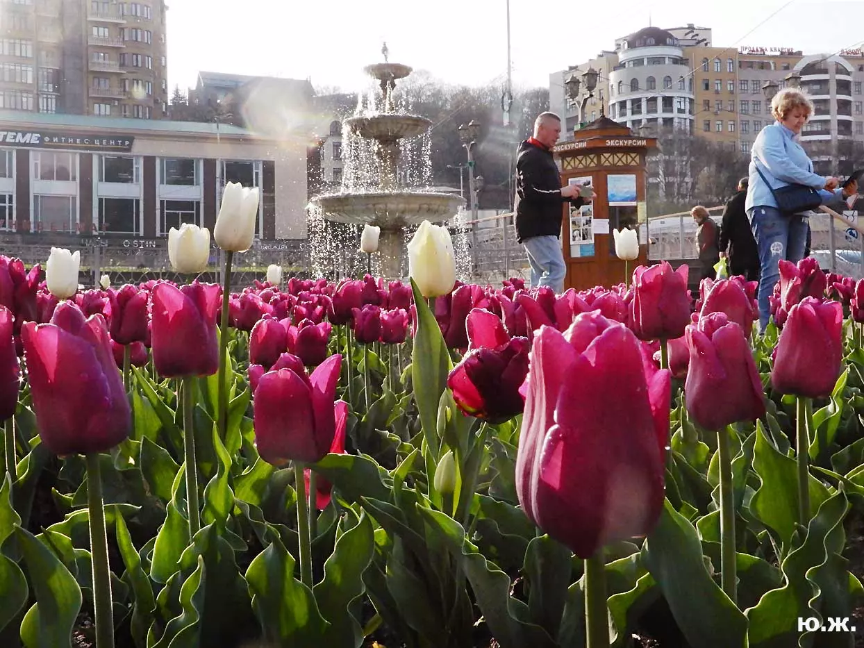 Одни деревья сменяют другие, первое — это время «белой кипени», когда создается такое впечатление, что везде вокруг цветут фруктовые деревья и все белое и нежно-розовое. В конце апреля — начале мая мы любовались впечатляющим цветением крохотного оазиса магнолий, что на Шаляпинском спуске — их крупными белыми, похожими на звезды, цветами. Кстати, в мае выбросило свой единственный очень крупный розовый цветок совсем небольшое деревце магнолии (см. фото). А потом, словно всплеск: зацвели каштаны, сирень, скоро будет акация, каким-то насыщенным ароматом заявила о себе, совсем недавно нежно-голубая глициния — у соседа с первого этажа. А роскошь штучных авторских клумб Курортного бульвара, которые будут всех радовать до глубокой осени и которые нужно воспевать только в стихах! А какими прекрасными ярко-розовыми цветами радуют курортников с их кружками, наполненными богатырским нарзаном, деревья вокруг фонтана «Лягушки»! Сеанс ароматерапии! А вспомните- «Тот цветущий и поющий яркий Май», один день из которого — девятый — мы совсем недавно торжественно отмечали.