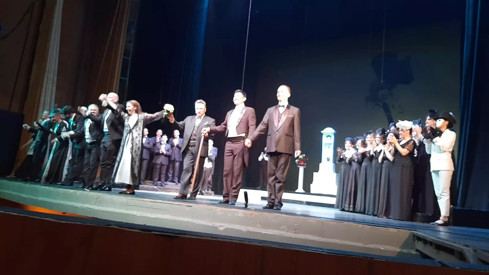 Успех оперы был грандиозен! 15 минут поклонники не отпускали артистов со сцены. Гром аплодисментов!