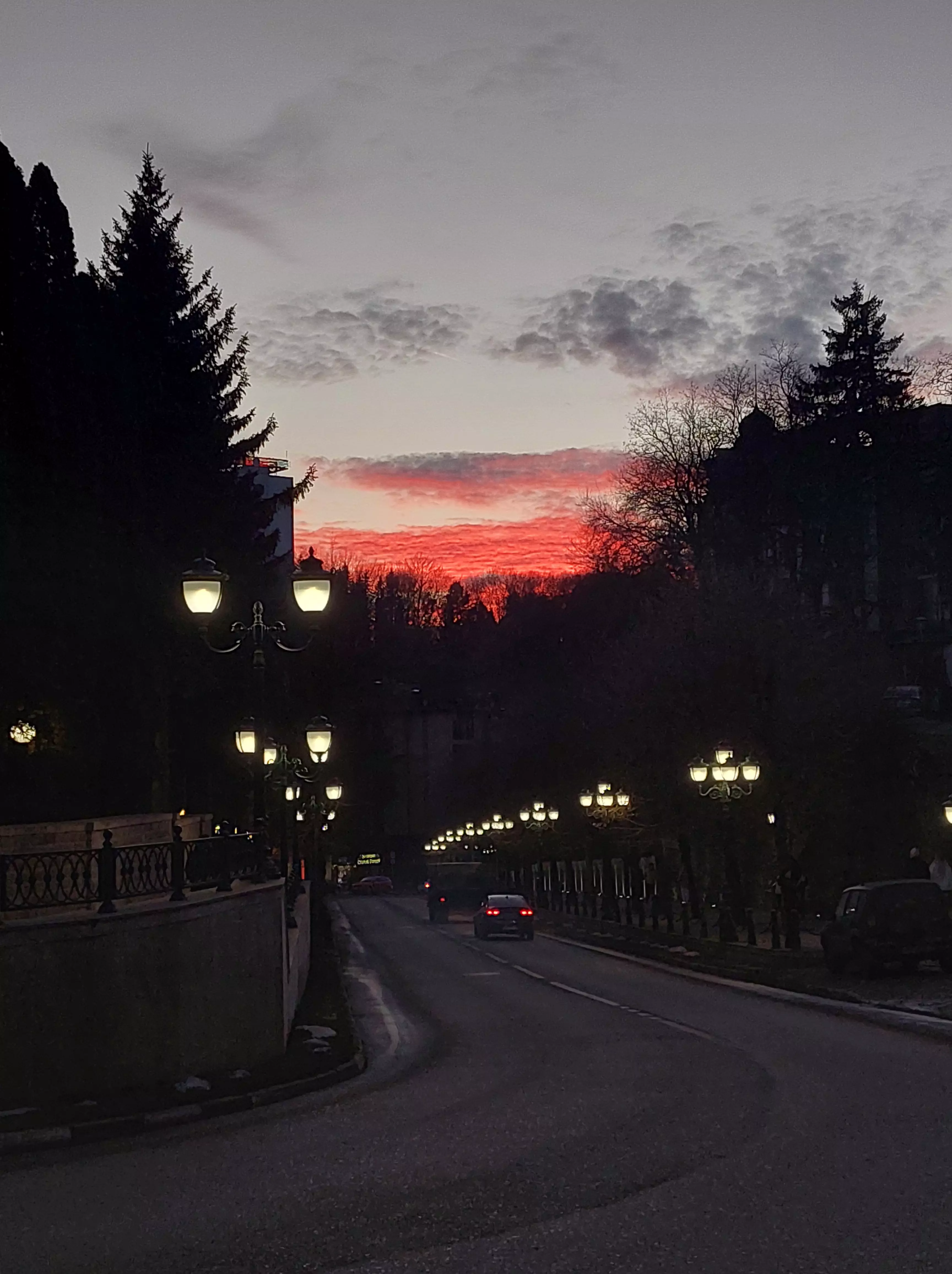Погода на новогодней неделе порадовала не только жителей, но и многочисленных гостей солнечного Кисловодска. Такое необычное небо и красочный закат мы наблюдали над знаменитой Долиной Роз в Национальном парке. А огни вечернего города с сияющей полной луной над ними дополнили живописную картину праздничной жизни любимого курорта.