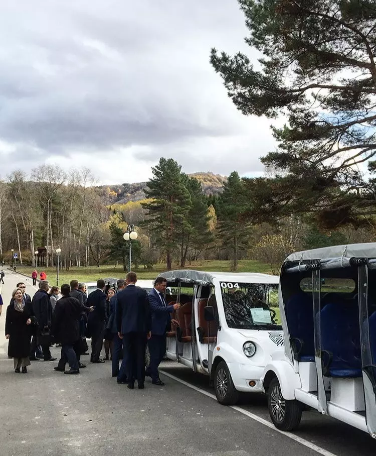 Во время прогулки на электромобилях члены делегации ознакомились с основными объектами национального парка «Кисловодский», также поднялись на смотровую площадку верхней станции канатной дороги.