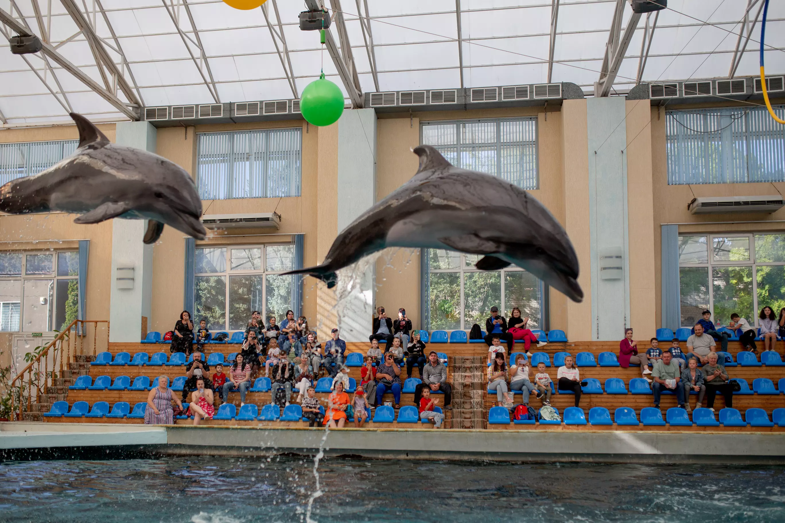 Шоу-программа, которая длится около часа, «стартует» с выступления морского котика, потом свои таланты показывает белый кит, а продолжают и заканчивают шоу черноморские дельфины-афалины.