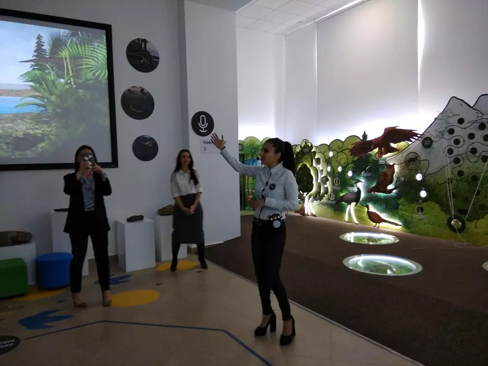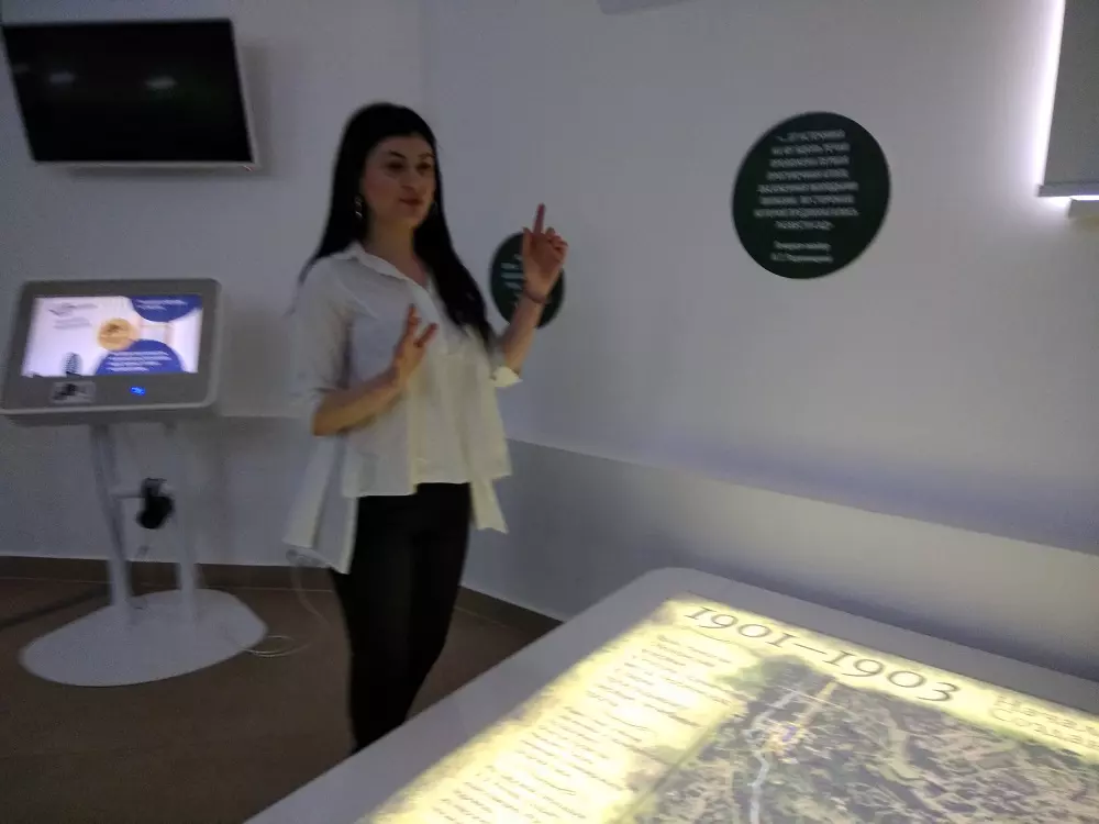 Встреча, на которую собралось более 20 человек, началась с краткой экскурсии по новой достопримечательности и гордости Кисловодска — визит-центру, мультимедийному музею истории и природы парка, который раскинулся на 800 квадратных метрах в здании Нарзанной галереи. За год работы в нем побывали 23 тысячи гостей, прошла 1371 экскурсия, однако на этот раз гостей ждал потрясающий сюрприз. Казалось бы, хорошо знакомые экскурсоводы: Мария Мятишкина, Дина Аджиева, Ольга Попова, Анастасия Бахталовская — рассказали о музее и показателях его деятельности в 2019 году на пяти иностранных языках: помимо русского, на английском, французском, испанском и греческом. На сегодняшний день в визит-центре 32 инсталляции, однако уже в следующем году в нем появится новая уникальная экспозиция — интерактивный комплекс «Нарзанная галерея: из прошлого в будущее», который позволит увидеть каменный шедевр английского зодчего Самуила Уптона… парящим в воздухе. Создать этот потрясающий эффект позволит одновременная работа 12 проекторов, синхронизирующихся в единый голографический экран.