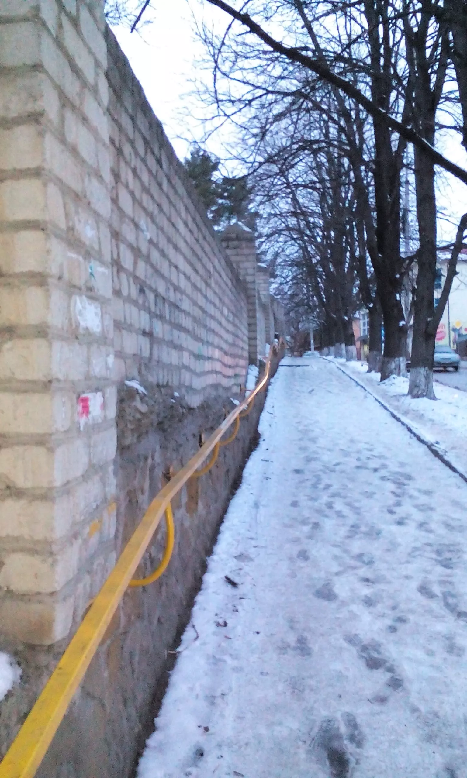 Названный тротуар проходит вдоль кирпичного забора, ограждающего территорию водных резервуаров. Смею предположить, что резервуары эти относятся к «епархии» городского водоканала. Вот и возникает вопрос: кто должен следить за состоянием и безопасностью этой «дороги жизни»? Водоканал, к территории которого (вероятно) тротуар прилегает, или же городские коммунальные службы? Надеюсь, что редакция и другие читатели смогут прояснить данный вопрос.