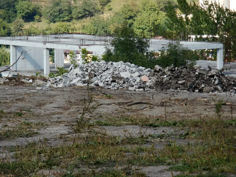 - горы и кучи строительного мусора прямо у пешеходной дорожки. Особенно большая куча мусора у железной лестницы, перекинутой через трубы теплотрассы.