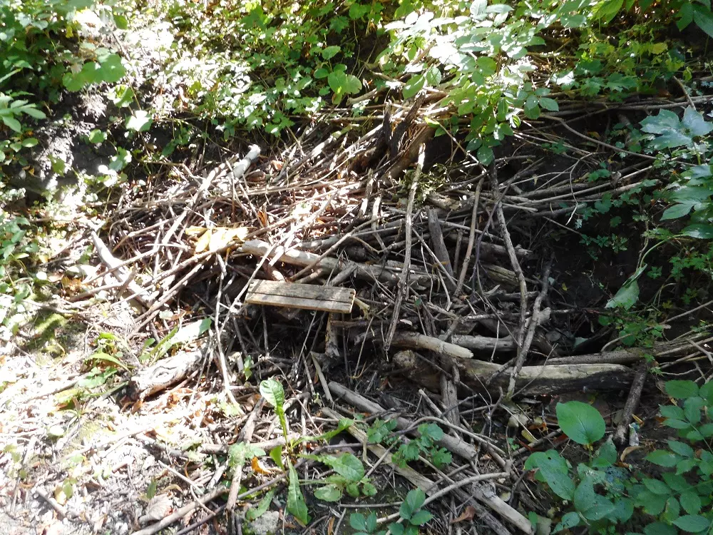 - недалеко от «железной лестницы» какая-то (как мне кажется) яма, прикрытая веточками. Какова глубина этой ямы — мне не известно. Но она никак не огорожена, и не дай Бог кто-то «проверит» её глубину по неосторожности.