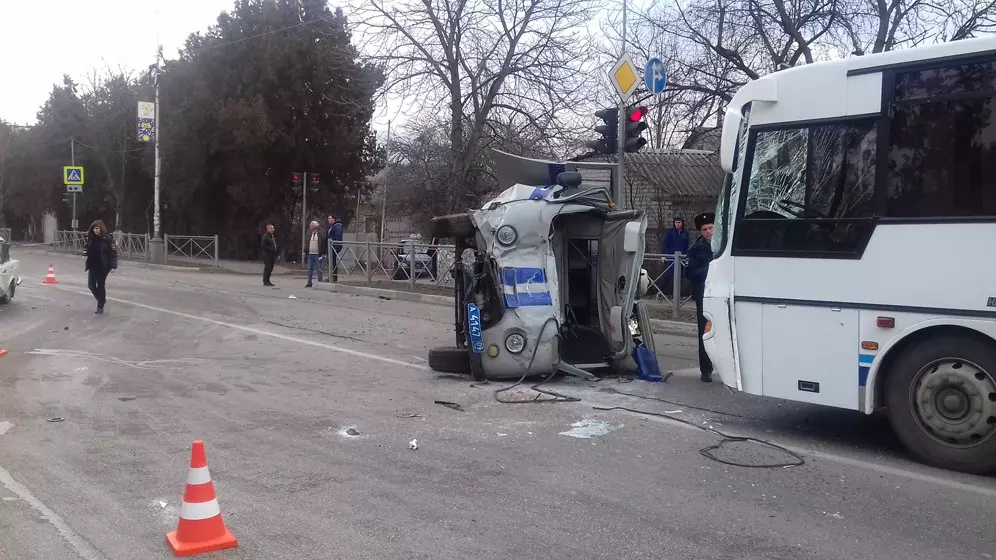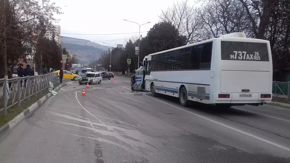 Около 7.20 служебная автомашина УАЗ спешила на происшествие за город, двигаясь по проспекту в сторону Октябрьской площади. На перекрестке с Водопойной стоявшая справа колонна беспрепятственно пропускала патруьный автомобиль с включенными проблесковыми маячками. Но тут справа от колонны на зеленый сигнал светофора выехал автомобиль ВАЗ 2103, начав маневр объезда. И – допустил столкновение с паструльным автомобилем, который, опрокинувшись, столкнулся с автобусом, стоявшим в ожидании зеленого сигнала светофора. В результате ДТП пострадал 7 человек. Двое сотрудника полиции находятся в реанимации. В настоящее время ведется административное расследование.