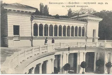 На восточной набережной Ольховки напротив казенной Ресторации находилось небольшое деревянное здание кофейни и кондитерской П.Ф. Колодяжного, столики которой стояли прямо в парке. После сильного наводнения в 1890 г. рядом был построен деревянный пешеходный мостик. Позже в 1899 г. деревянный мостик был заменен бетонным и было решено построить новое здание на месте прежних кондитерских павильонов. Создание проекта кофейни было поручено архитектору Н.Н. Семенову. Она должна была строиться на средства московского предпринимателя Родиона Дмитриевича Вострякова, взявшего ее в аренду на 10 лет. Однако ввиду недостаточности места для большого сооружения была предложена оригинальная идея — увеличить площадь застройки путем заключения небольшого участка русла Ол