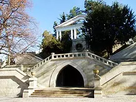 Братья Бернардацци выстроили просторное здание кисловодской Ресторации — дома благородного собрания, с буфетом, бальным залом, дамской и мужской гостиными и несколькими номерами, хотя императрица так и не решилась приехать на опасный Кавказ. В Ресторации проводила время курортная публика, выступали заезжие артисты. После поспешного возведения летом 1823 г. простого деревянного здания Ресторации архитекторы Бернардацци вскоре предложили генералу А.П. Ермолову украсить новое здание с западной стороны колонным портиком и каменную лестницу и внизу устроить грот из различных окаменелостей». Грот выложили причудливыми известковыми камнями, которые содержали окаменевшие отпечатки древних растений и насекомых. Можно сказать, что грот каменный грот стал своеобразной кунсткамерой окаменелостей КМВ, первым его краеведческим музеем. В 1890-х гг. архитектором С.И. Уптоном была произведена капитальная перестройка здания Ресторации. В конце XIX века в каменном гроте под Ресторацией располагалась маленькая кофейня. В начале XX века лестница была снова изменена. Ее верхний марш был оформлен как парадный вход с крыльцом, а боковые нижние марши были обновлены — сделаны новые ступени и ажурные перила. Грот же не изменился. В начале XX века он сдавался Управлением Вод для устройства в нем небольших частных магазинов, кафе, фотосалон. Здание ресторана сильно пострадало от пожара в годы Великой Отечественной войны и было полностью снесено, а в 1948—1949 гг. на месте старой лестницы была сооружена новая каменная лестница и обустроена Лермонтовская площадка. Верхний марш сохранившейся лестницы, по которой некогда ходил Лермонтов, закрыли мощной стеной из каменных блоков. В круглой нише поместили скульптурный портрет М.Ю.Лермонтова, работы местного скульптора Фёдора Ивановича Перетятько. Ниже расположили пальмовую ветвь- символ неувядающей славы и лермонтовские строки с автографом:
