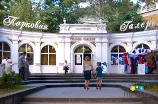 Около 1899 г. на этом месте была построена кирпичная галерея предназначенная для торговли различным переносным товаром, которая к этому времени уже переполнила помещения Нарзанной галереи. В торговой галерее находилось множество киосков, в которых продавалась печатная продукция, небольшие картины, разные сувениры и безделушки. По описанию посетителей галерея представляла собой «ряд низких построек, в которых производится торговля итальянскими изделиями для дамского туалета и кавказскими серебряными и золотыми вещами; тут и крошечное почтовое отделение, которое открывается только во время курса». Автором проекта этой изящной галереи, по стилю весьма похожей на здание парковой читальни, предположительно, был старший архитектор КМВ И.И. Байков либо его помощник Д.П. Павлов. Открытая аркада галереи вскоре была застеклена и превращена в ряд широких полуциркульных окон. В 1920-х годах помещения занимали почтовое отделение и небольшой буфет. После постройки нового просторного почтового здания в галерее с 1955 г. до 2003 г. помещалась Курортная выставка с экспозицией, посвященной истории Кисловодского курорта. Ныне павильон, называемый «Парковая галерея», занимают частные магазины.