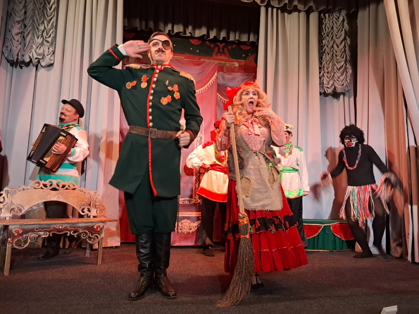 Спектакль был живой и весёлый за счёт нескончаемого юмора. Наш стрелец — молодец светился, как начищенный пятак, при такой красавице-жене Маруси. Все герои понравились зрителям. Спектакль пролетел, как одно мгновение. Буря аплодисментов долго сопровождала актёров после завершения представления.