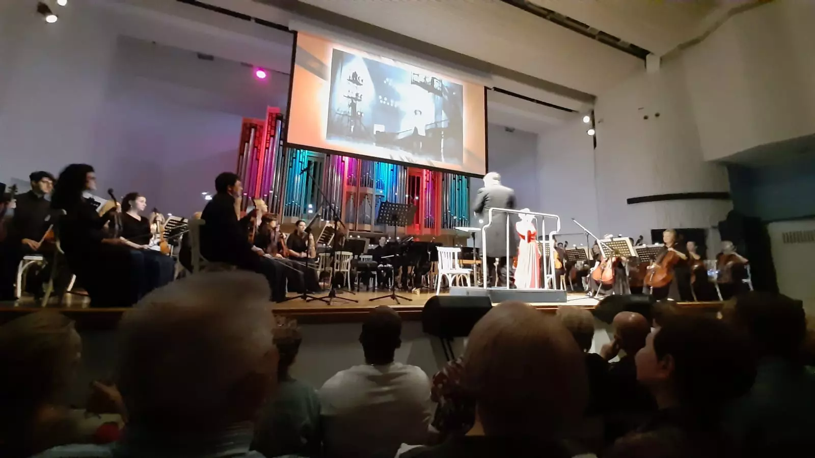 На протяжении всей программы на большом экране проплывали фрагменты кинокартин, песни из которых были исполнены артистами. Это очень усиливало восприятие самих песен, дополняло эмоций!
