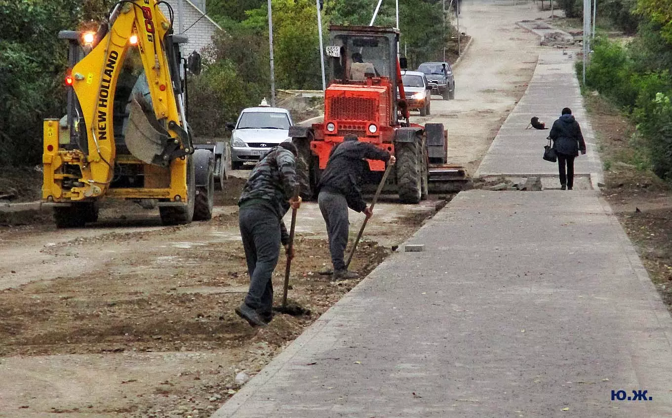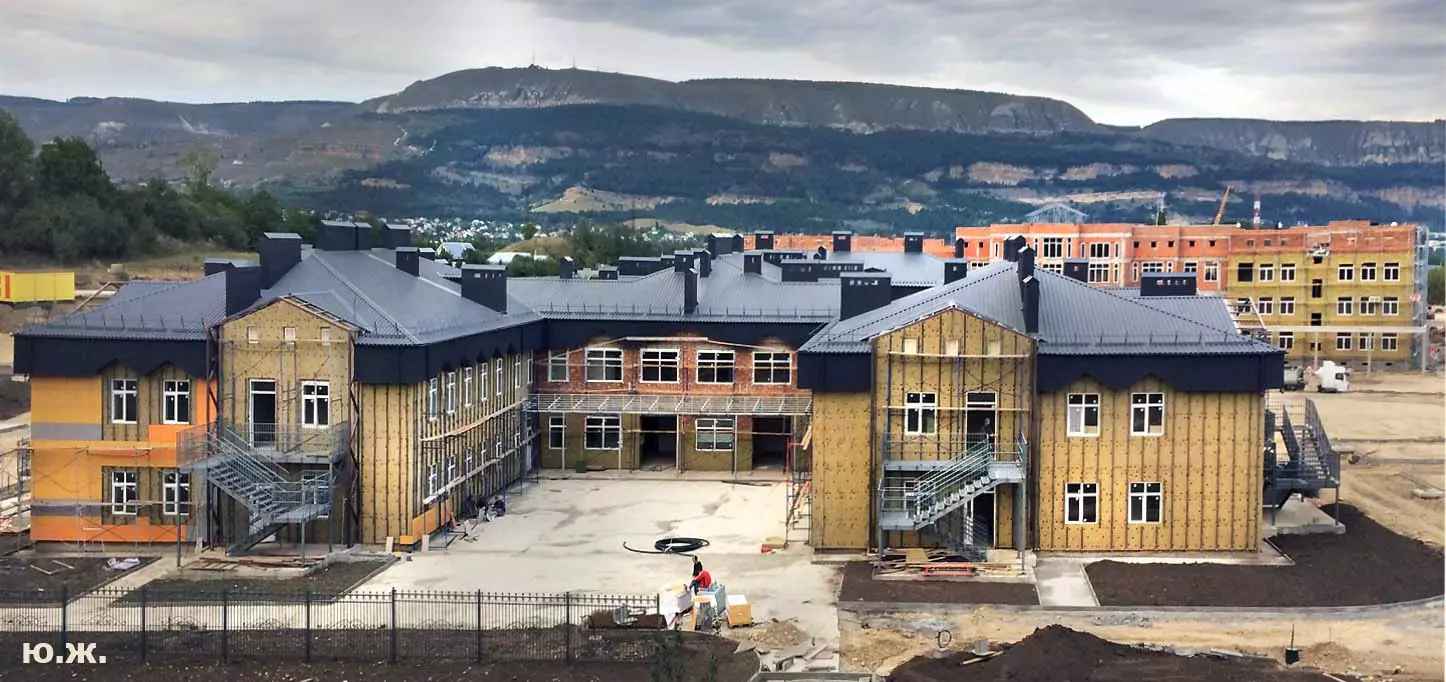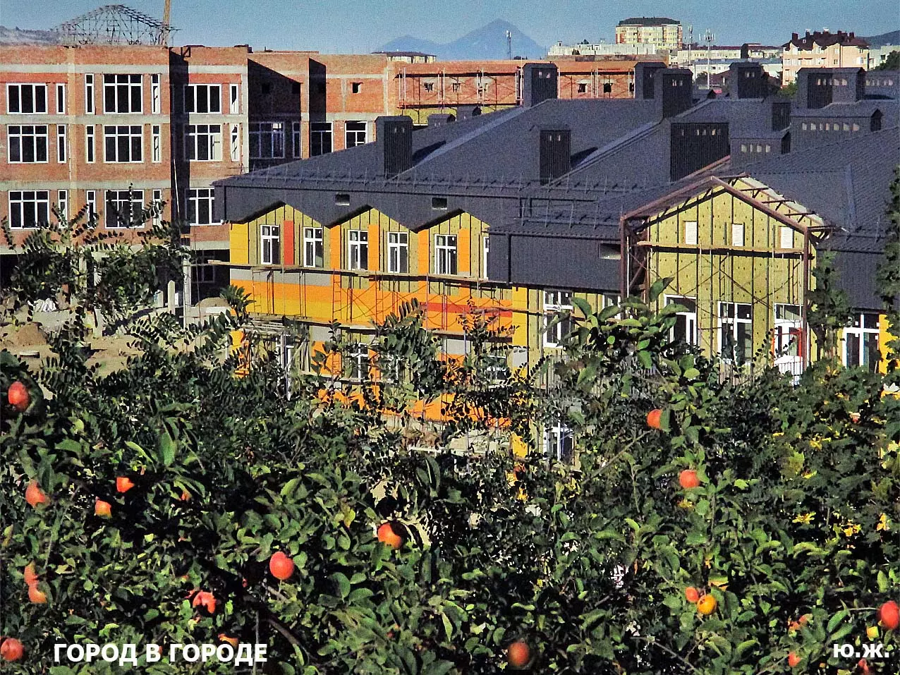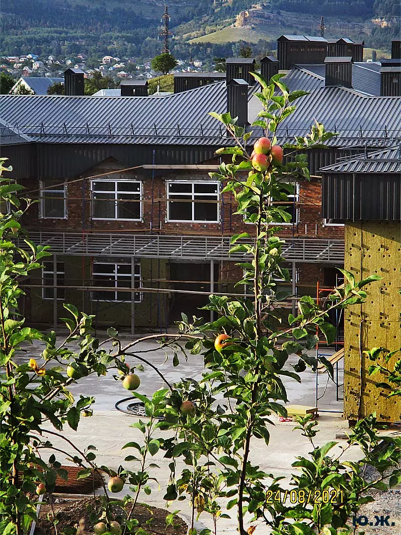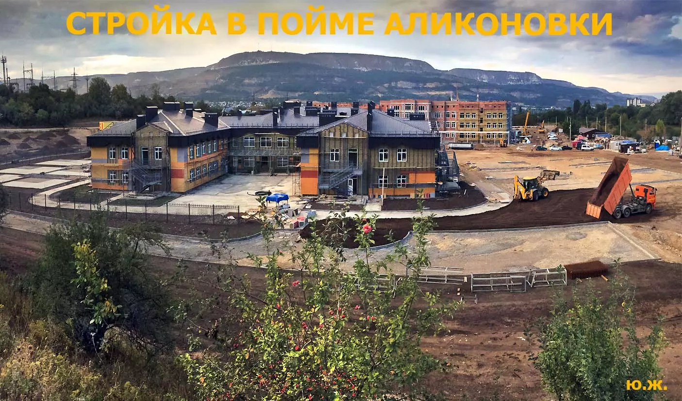 Так выглядит уже ставшая знаменитой стройка в последние дни сентября — начале октября. Как я понял в эти дни, холодные и часто дождливые, много людей работают на прокладке подъездных дорог к школе и садику, укладке пешеходных плиток и подготовке к укладке асфальта (на фото). Много рабочих на территории, в зданиях. Появился у корпусов садика яркий детский городок. Сейчас особенно красиво выглядят с созревшими плодами яблони, создающие впечатление утопающей в яблоневом саду стройки. Все больше и больше вокруг золотистого и багряного цвета. Осень набирает силы.
