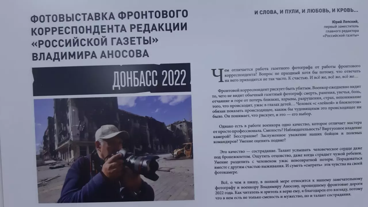Ярким событием традиционного журналистского форума «Вся Россия » проходящего в эти дни в Сочи, стало открытие выставки фотокорреспондента «Российской газеты» Владимира Аносова. Эти снимки были сделаны в Донбассе, где автор провел шесть месяцев.