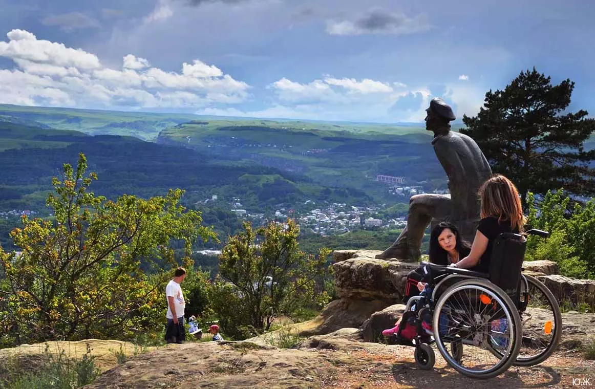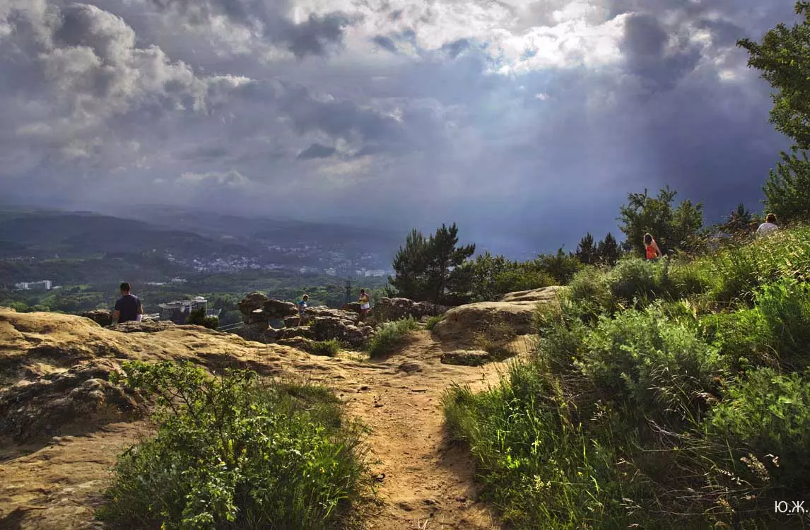 Даже со смотровой площадки Малого Седла, поворачиваясь медленно на 360 градусов, мы, словно сканируя пространство, видим Эльбрус, Кавказский хребет, его отроги, Большое Седло, Боргустанский хребет, внизу раскинулся Кисловодск, далее, левее парк – круг завершается.