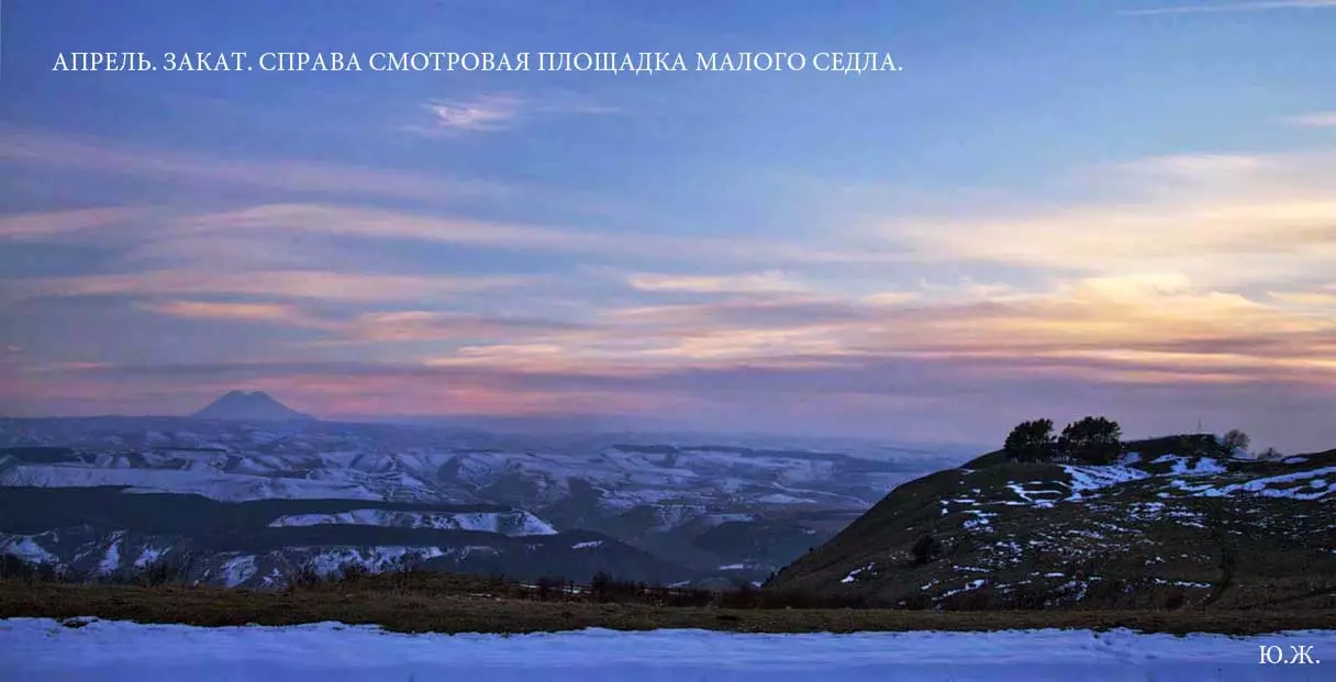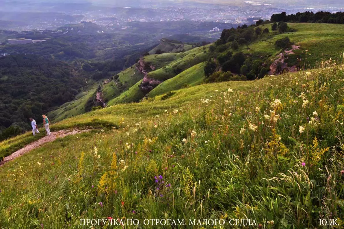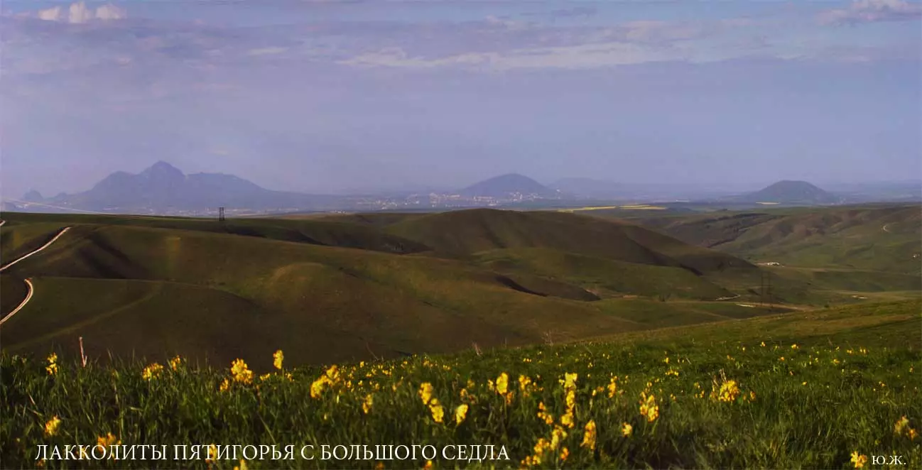 С Большого Седла панорама еще величественнее. Необычно предстают: Пятигорск с Машуком, Бештау, Лермонтов у горы-лакколита Шелудивая, другие горы- лакколиты: Змейка, Железная, Развалка, Бык, Верблюд, правее Юца, Джуца. С Большого же Седла чуть по другому, полнее предстает Кавказский хребет, Эльбрус.