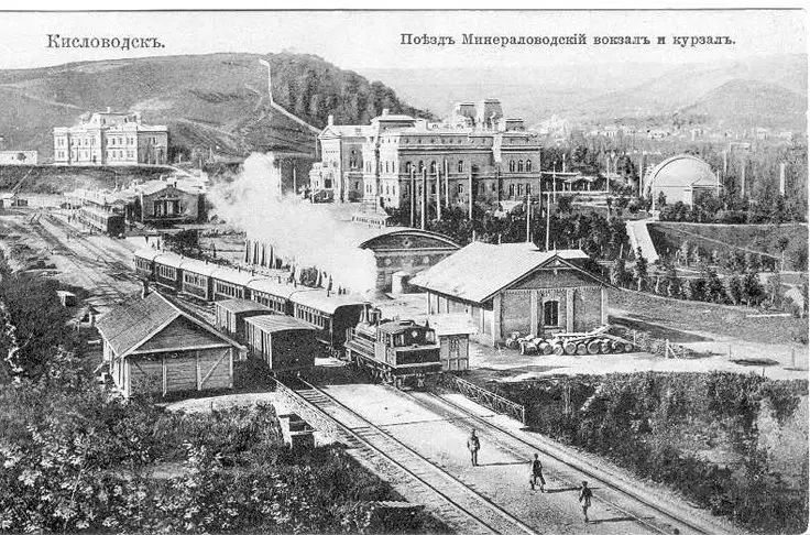 строительство железной дороги Минеральные Воды – Кисловодск для обслуживания нужд быстро растущих курортов Кавказских минеральных вод (КМВ). В 1892 году строительство дороги было начато и уже в 1894 году окончено. На строительство ответвления от Минеральных Вод длиной 62 километра в условиях сложного горного рельефа и техники того времени ушло всего два года. Оригинальной конструкцией зданий железнодорожных вокзалов основных курортов КМВ мы можем любоваться до сих пор, учитывая, конечно, что они неоднократно за сто с лишним лет в той или иной степени меняли свой внешний облик. Вагоны с почтенной «водяной» публикой и платформы с грузами тогда тянули 2 паровоза в силу очень больших уклонов рельсового пути: до сих