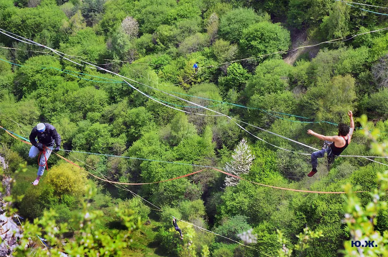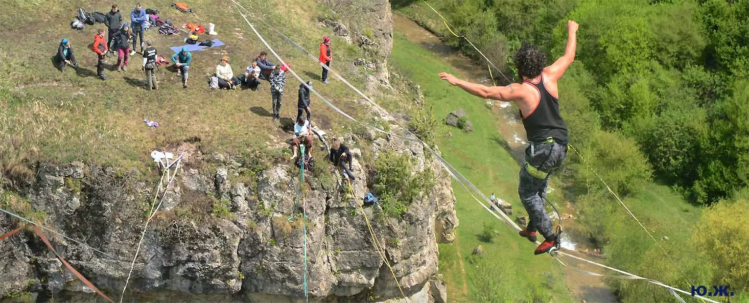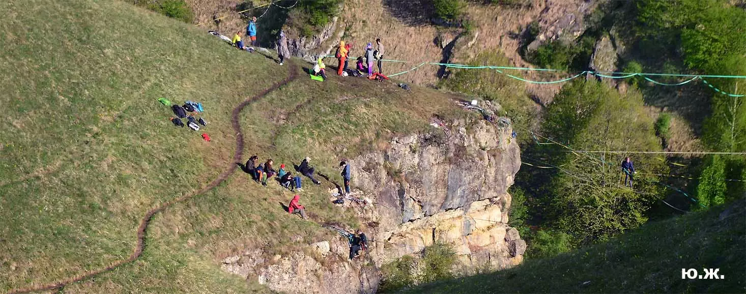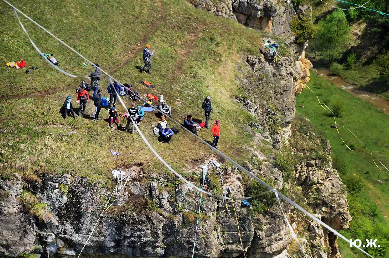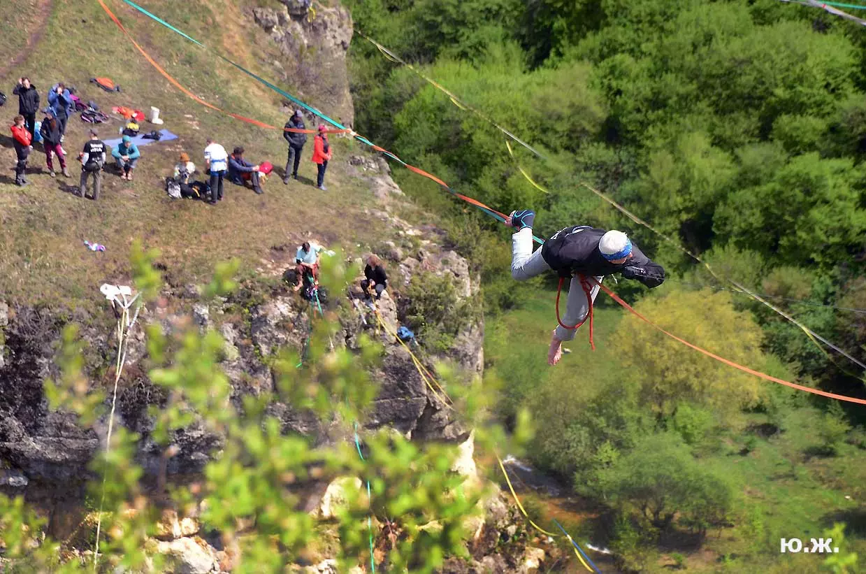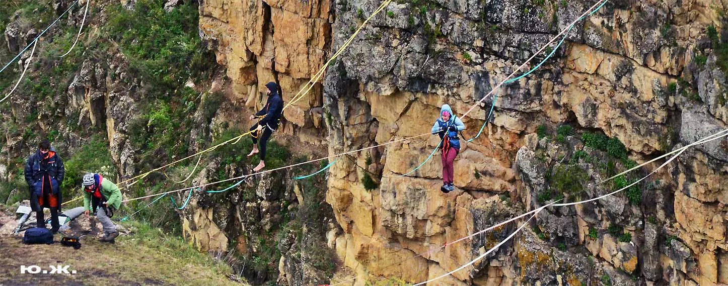 На этот раз большой интерес и внимание было к гамакам — гамакам ярким, каких-то солнечных, флюоресцентных цветов. Похожие на лодки, ладьи, они раскачивались и у палаток — где с детьми, где с девушками. Прямо у дороги, которая вела к обрыву со стропами, возлежали мужчины, закинув ногу на ногу, листая свои гаджеты. Прямо посередине каньона был натянут большой яркий гамак-сетка, и интересно было наблюдать, как к нему по стропам изредка причаливали хайлайнеры. Насколько я понял, было не так-то просто взбираться на него: они часто срывались и висели на страховках головой вниз, чтобы, восстановив дыхание, снова подниматься к гамаку.