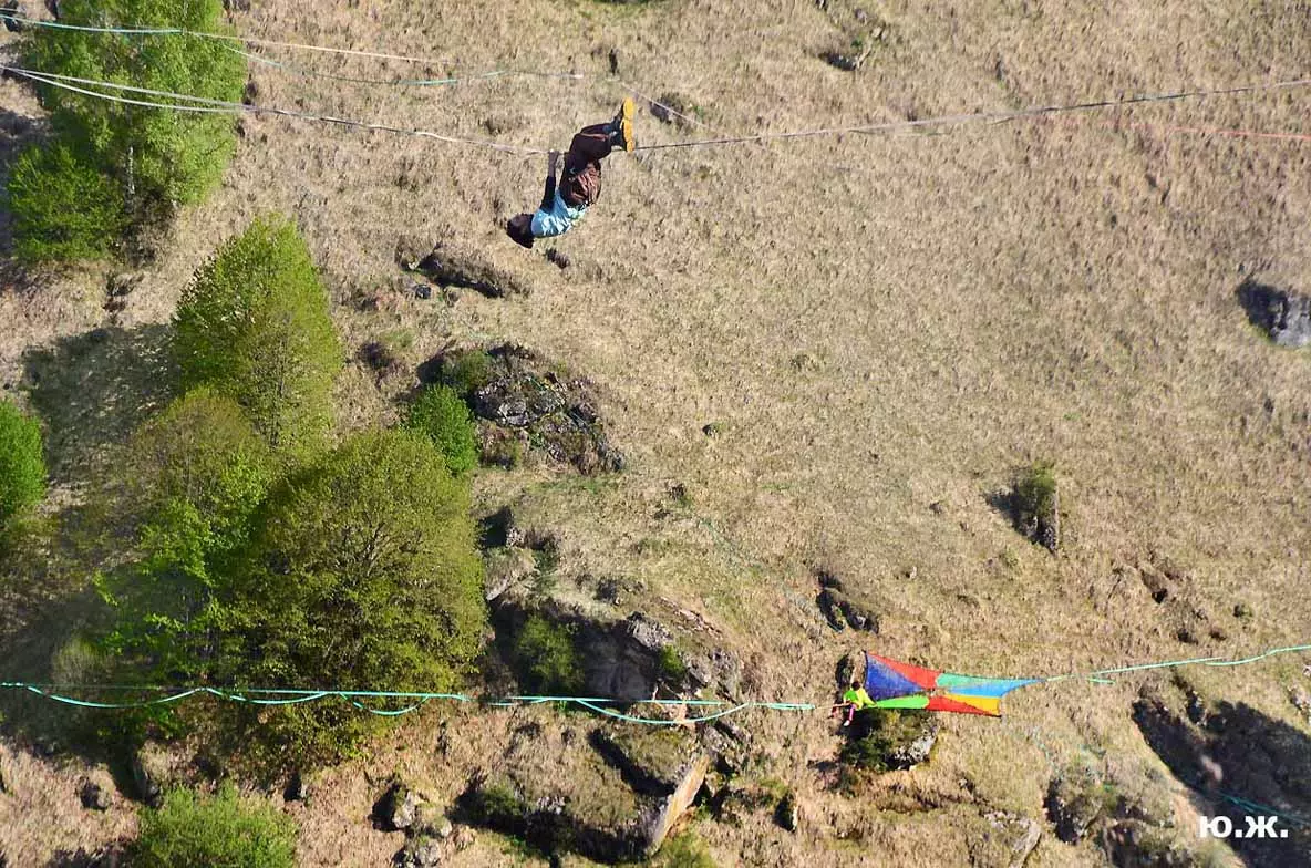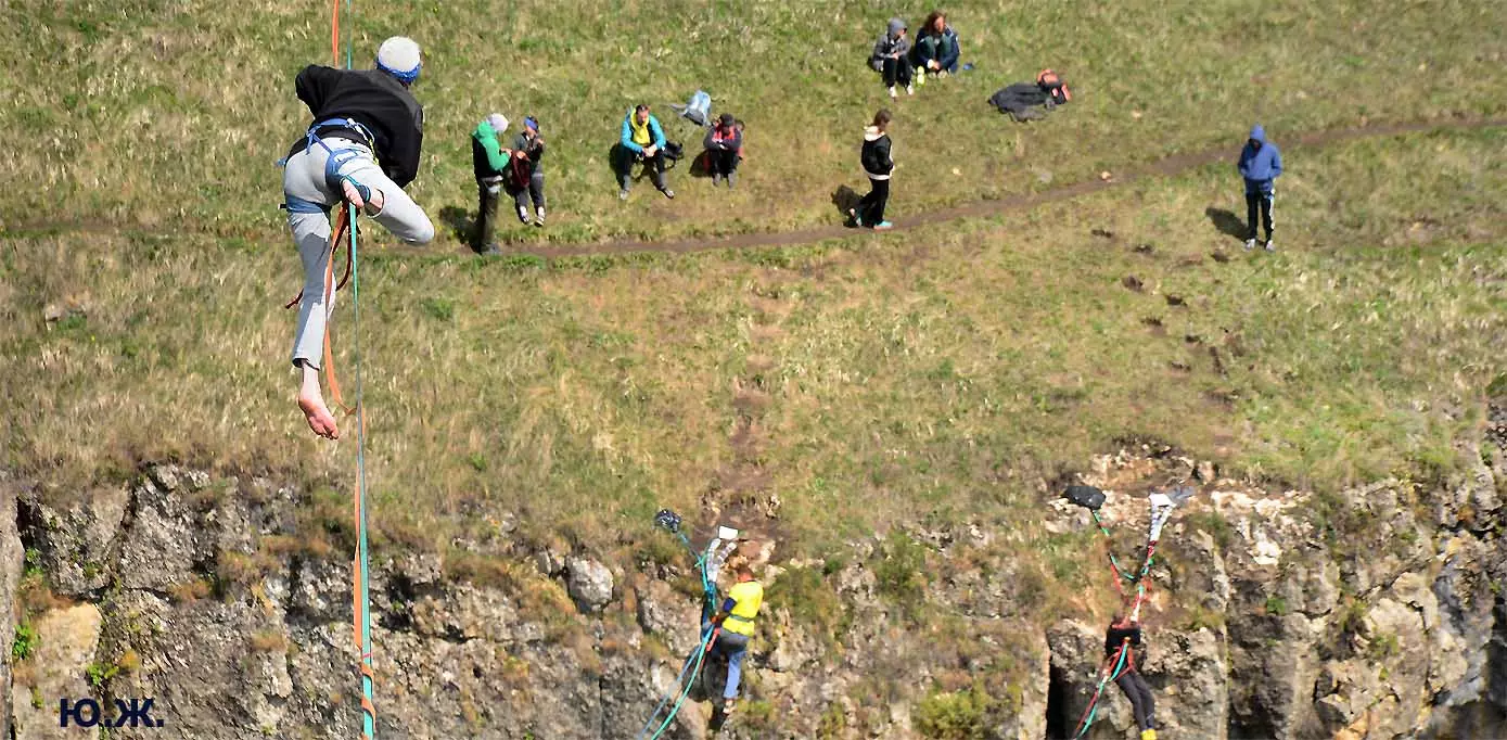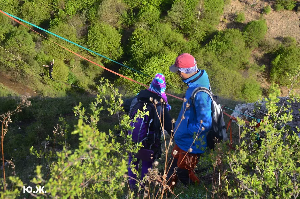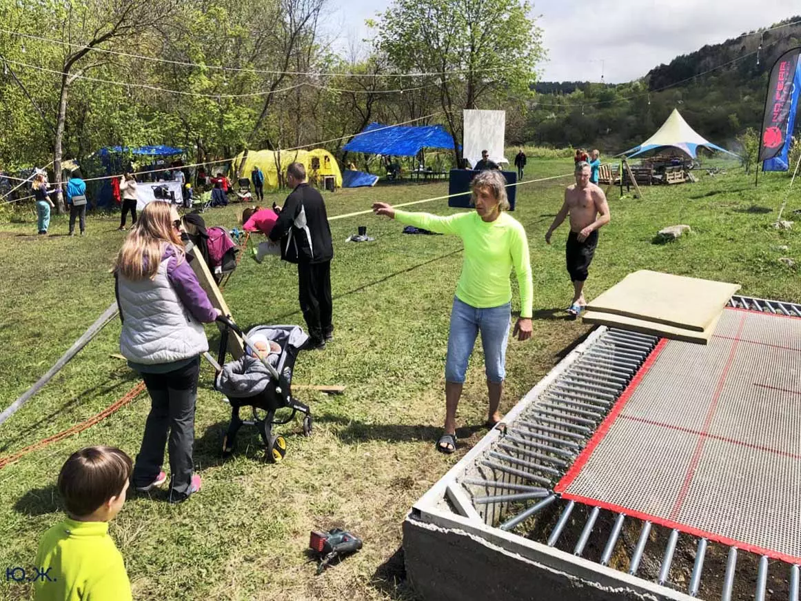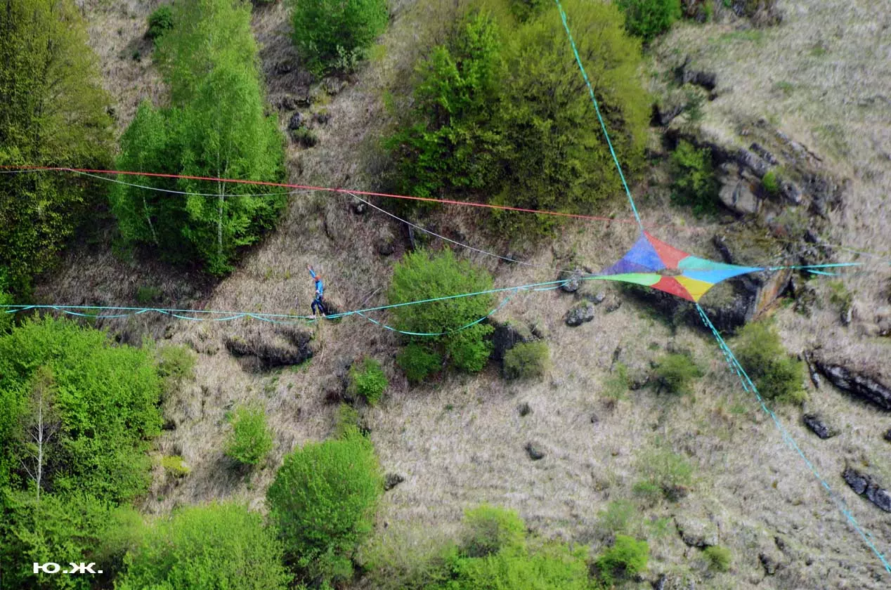 На этот раз большой интерес и внимание было к гамакам — гамакам ярким, каких-то солнечных, флюоресцентных цветов. Похожие на лодки, ладьи, они раскачивались и у палаток — где с детьми, где с девушками. Прямо у дороги, которая вела к обрыву со стропами, возлежали мужчины, закинув ногу на ногу, листая свои гаджеты. Прямо посередине каньона был натянут большой яркий гамак-сетка, и интересно было наблюдать, как к нему по стропам изредка причаливали хайлайнеры. Насколько я понял, было не так-то просто взбираться на него: они часто срывались и висели на страховках головой вниз, чтобы, восстановив дыхание, снова подниматься к гамаку.