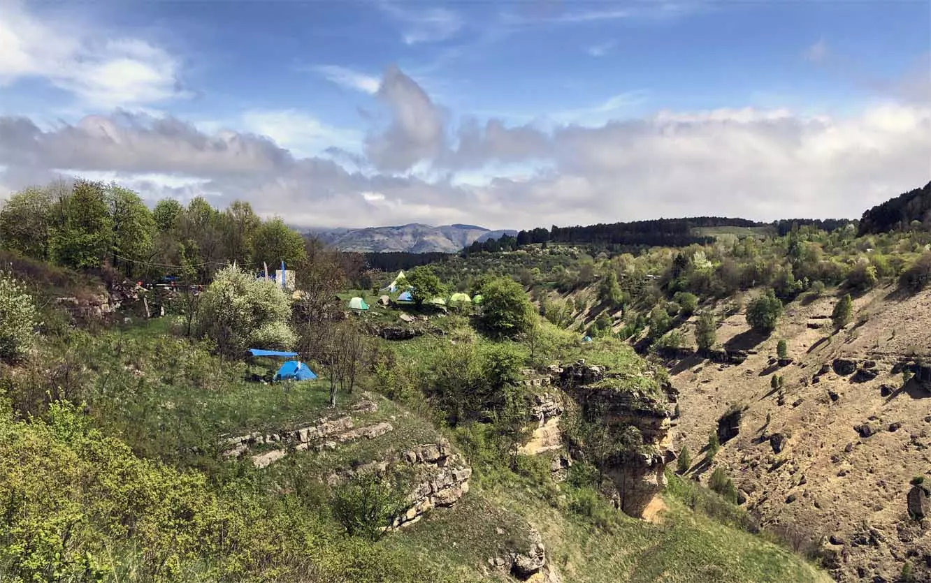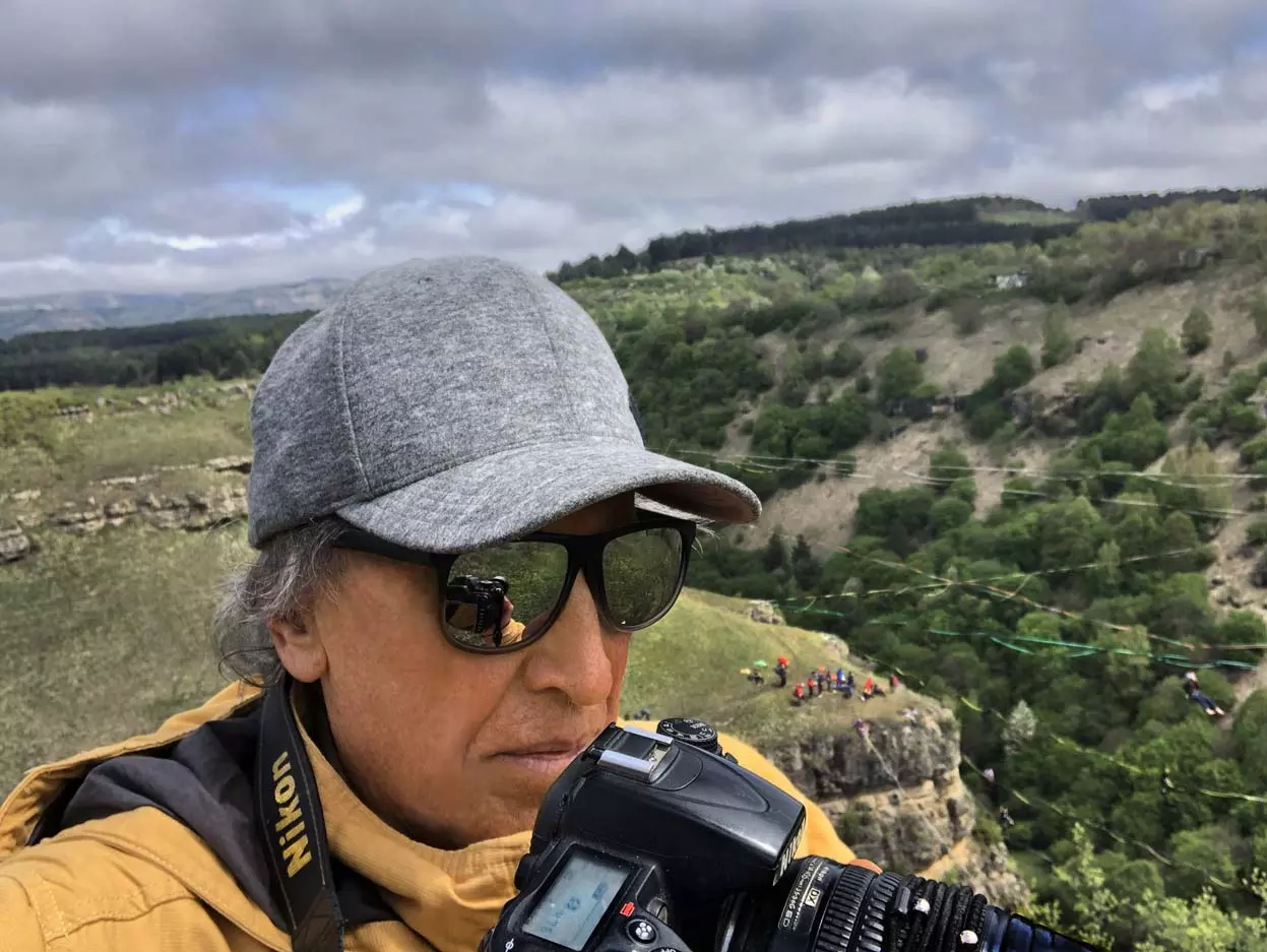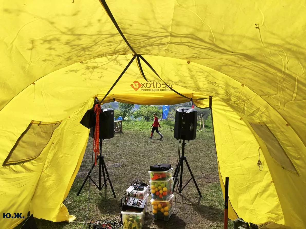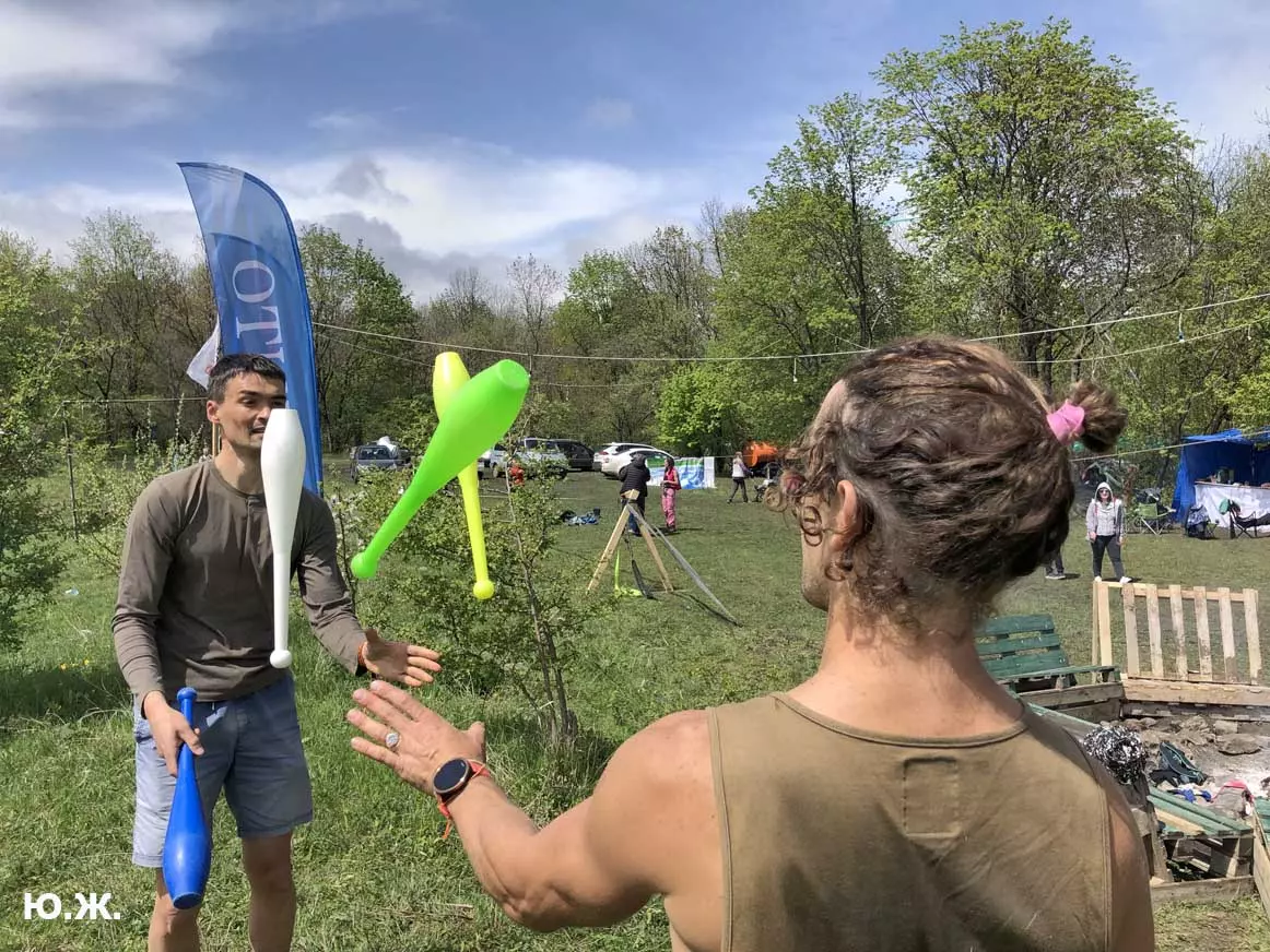 В этом году стропы разной длины были сосредоточены в основном в одном месте, примерно в паре сотен метров от небольшой площади, окруженной палатками. Здесь играла музыка, жонглеры перебрасывались булавами, другие жонглировали цветными мячиками, прыгали на батуте… Но меня интересовал Хайлайн. На этот раз была натянута пятисотметровая стропа, она была ориентирована не перпендикулярно берегам каньона, а по диагонали. Вид на нее был интересен еще и благодаря роскошной и очень фотогеничной скалы, где и был закреплен один из концов стропы. На более коротких стропах всегда много народу. Здесь случается много срывов, падений, зависаний на страховках — для меня это интересно, успевай только ловить этот момент. Еще мне показалось, что на этот раз число тренированных ребят было меньше — наверное, это из-за двухлетнего ковидного перерыва. Зато природа здесь все также прекрасна.