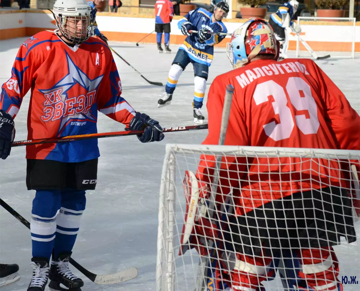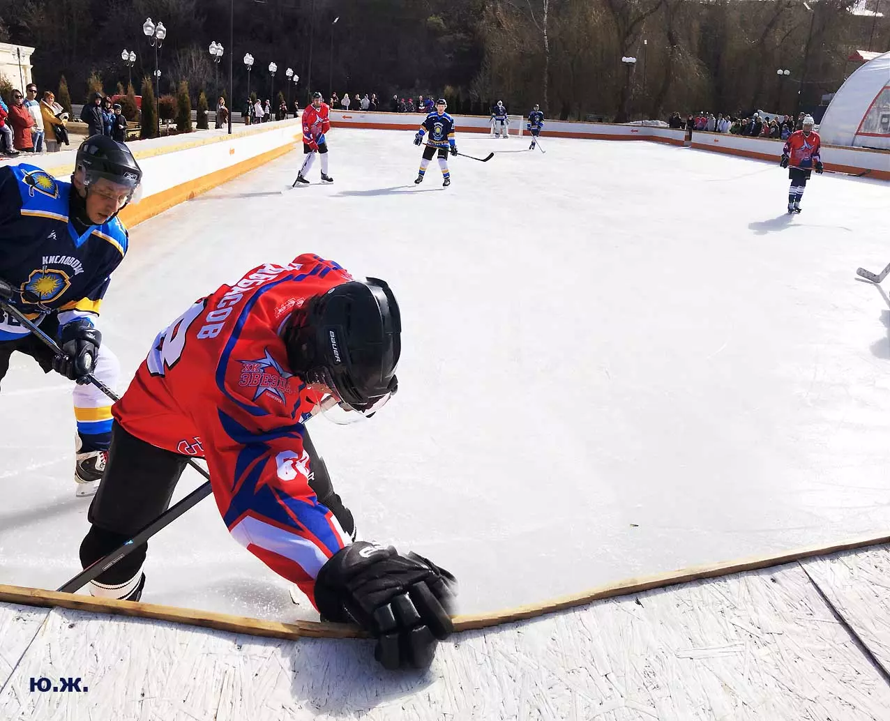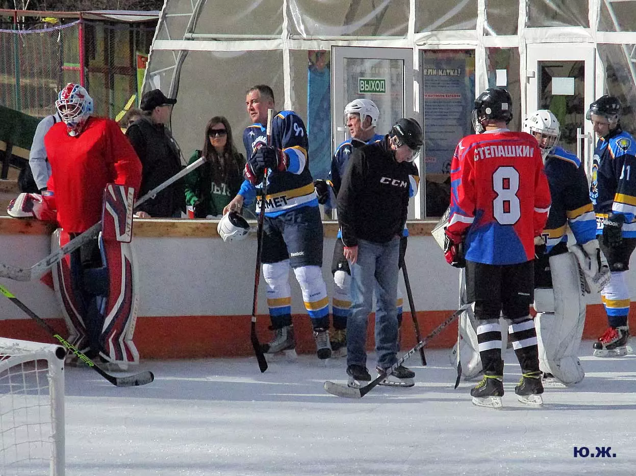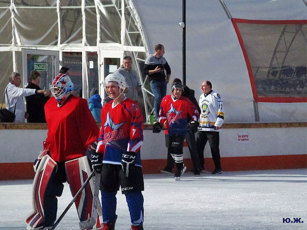 Вчера 23 февраля на новом ледяном катке, что рядом с цирком, в честь Дня Защитника Отечества, был проведен товарищеский матч по хоккею с шайбой на льду. Играли настоящие мужчины, среди которых было много тех, кому и серьезно за пятьдесят.