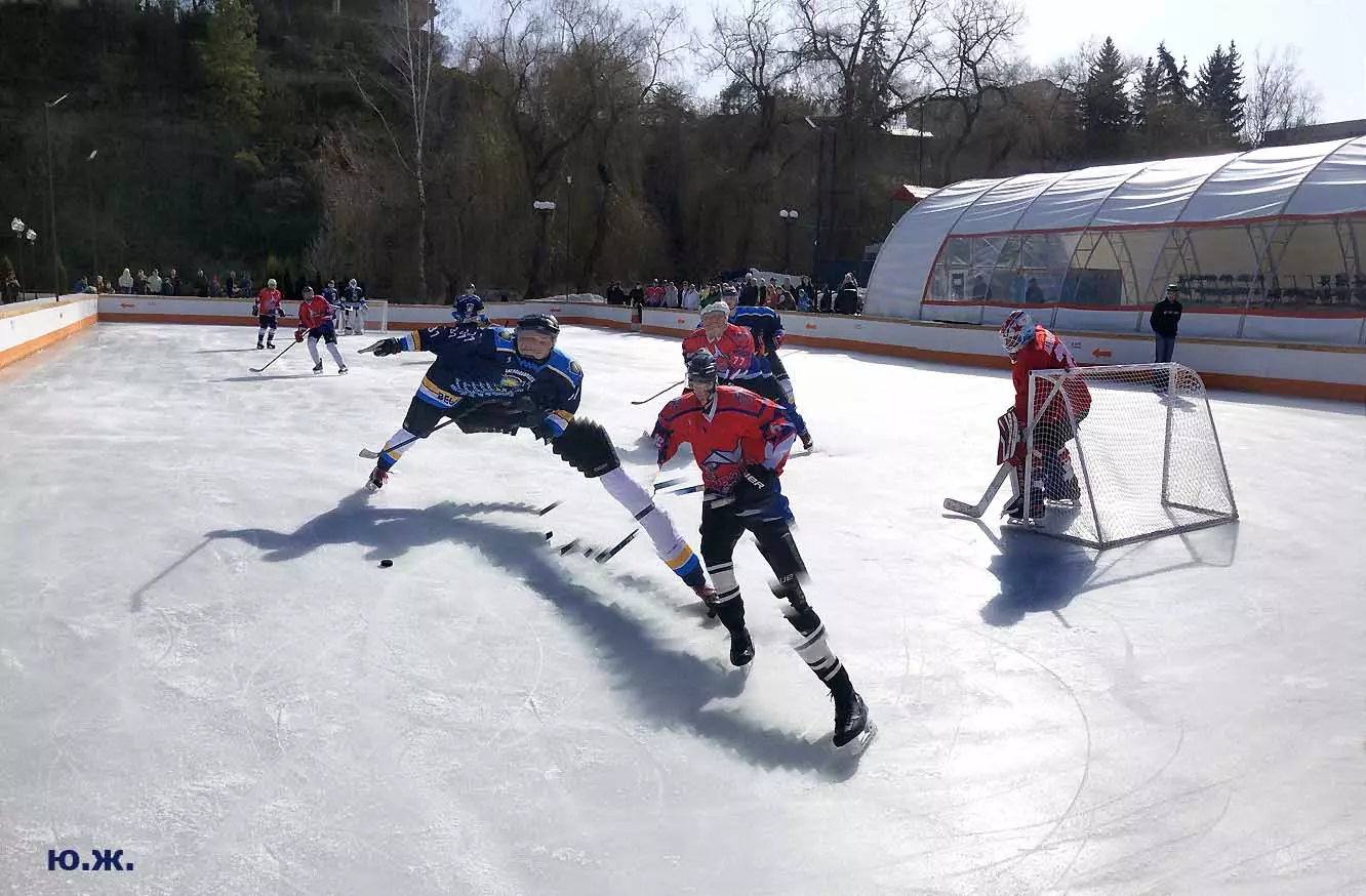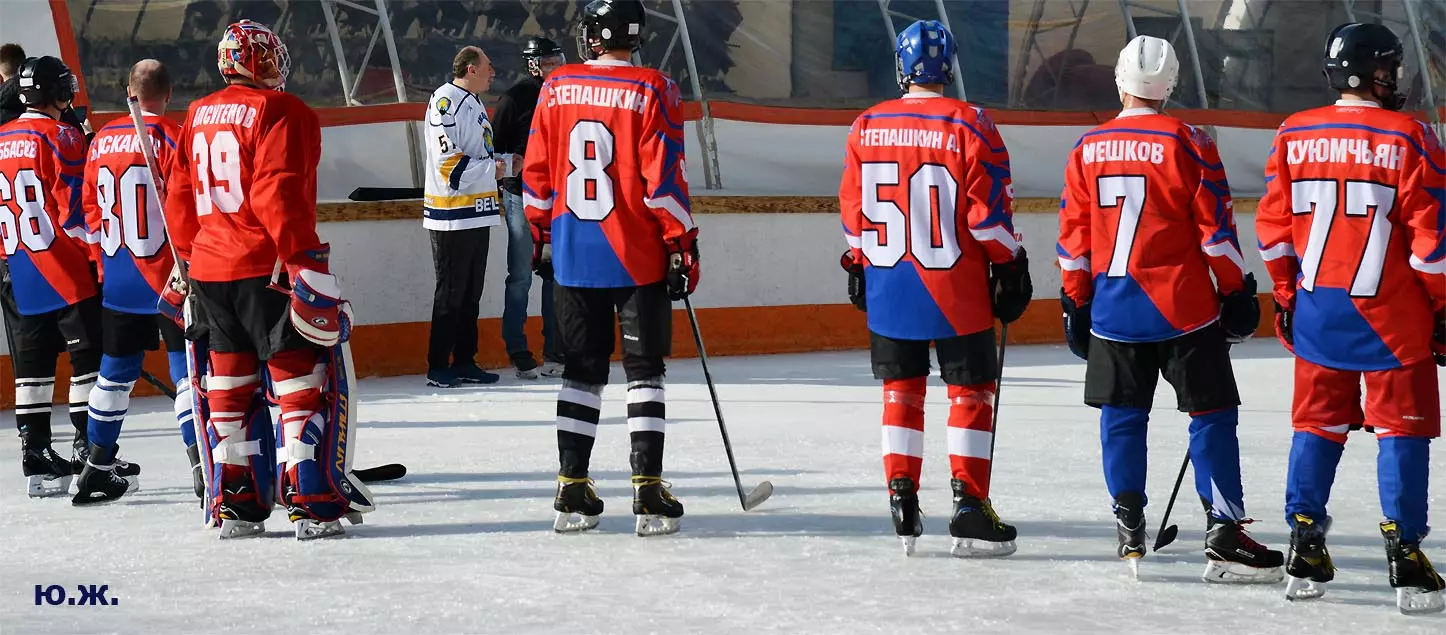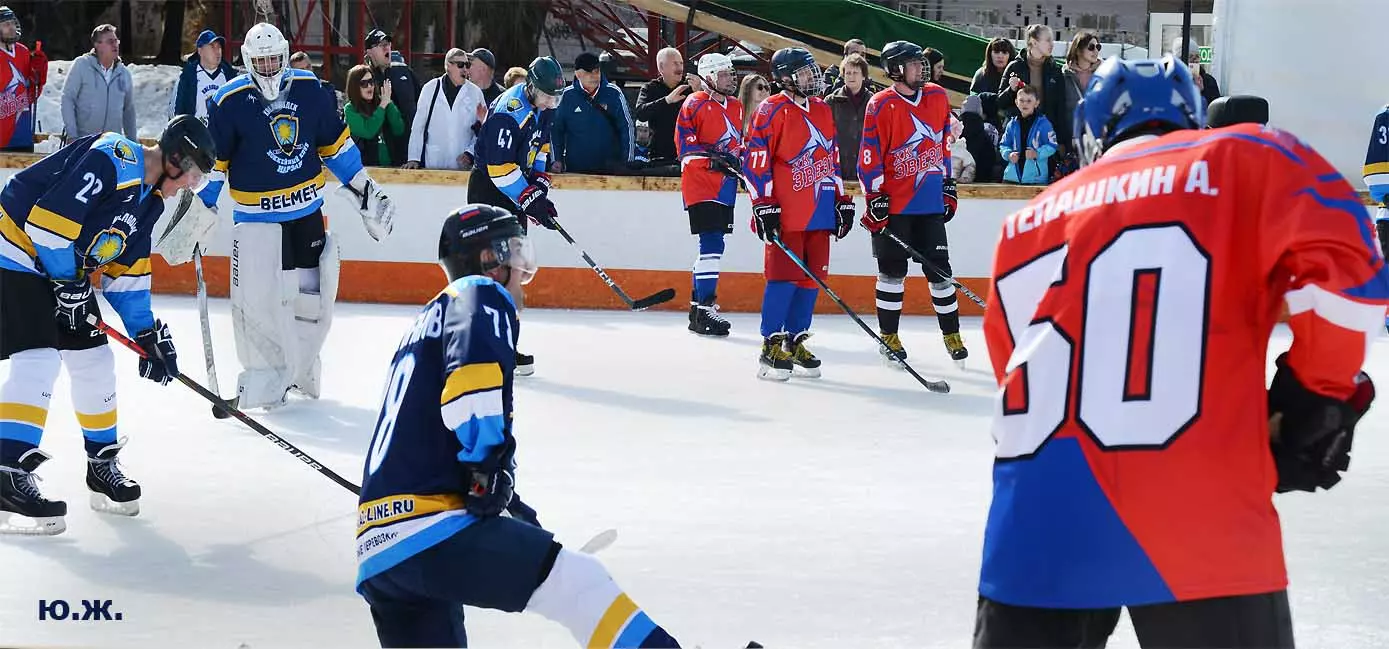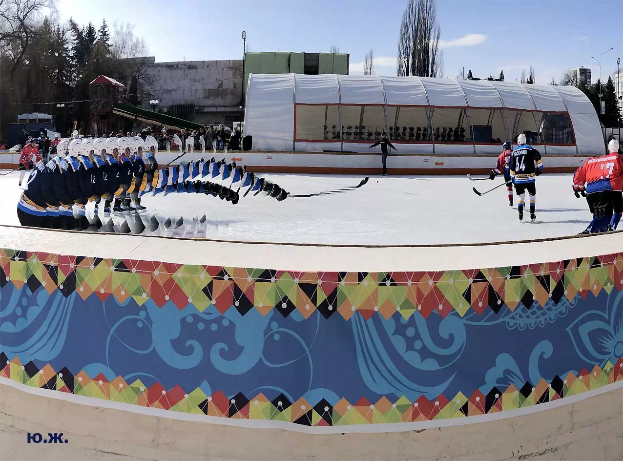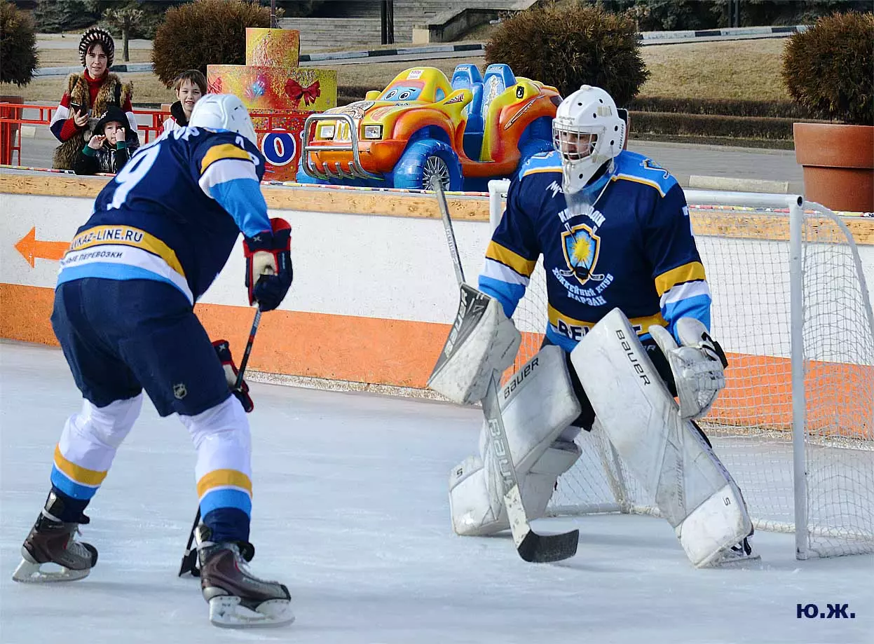 Вчера 23 февраля на новом ледяном катке, что рядом с цирком, в честь Дня Защитника Отечества, был проведен товарищеский матч по хоккею с шайбой на льду. Играли настоящие мужчины, среди которых было много тех, кому и серьезно за пятьдесят.