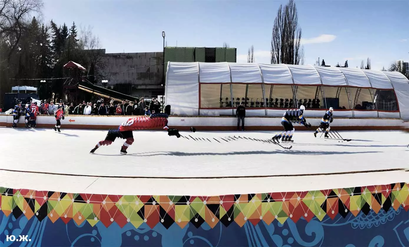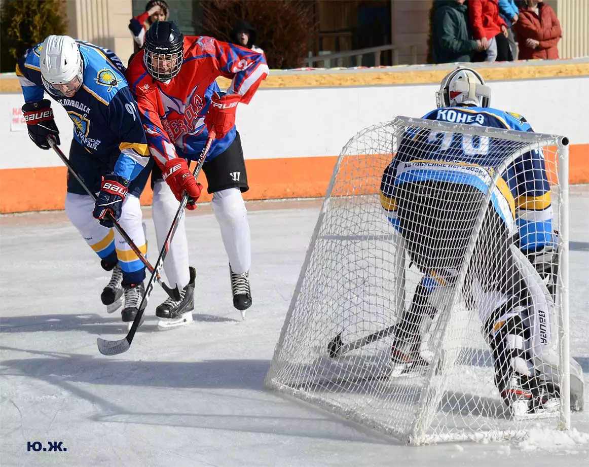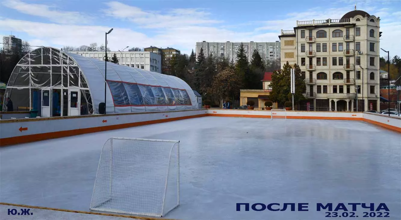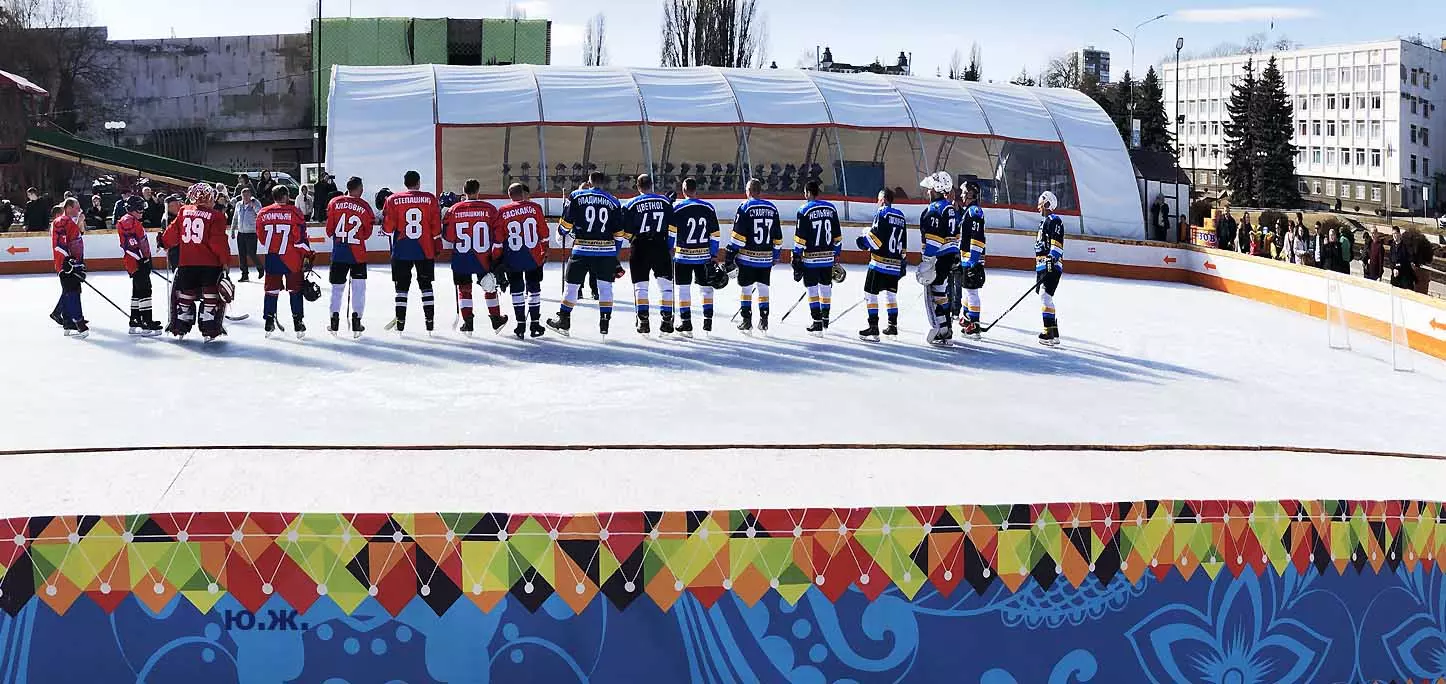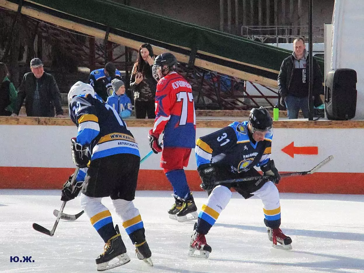 Вчера 23 февраля на новом ледяном катке, что рядом с цирком, в честь Дня Защитника Отечества, был проведен товарищеский матч по хоккею с шайбой на льду. Играли настоящие мужчины, среди которых было много тех, кому и серьезно за пятьдесят.