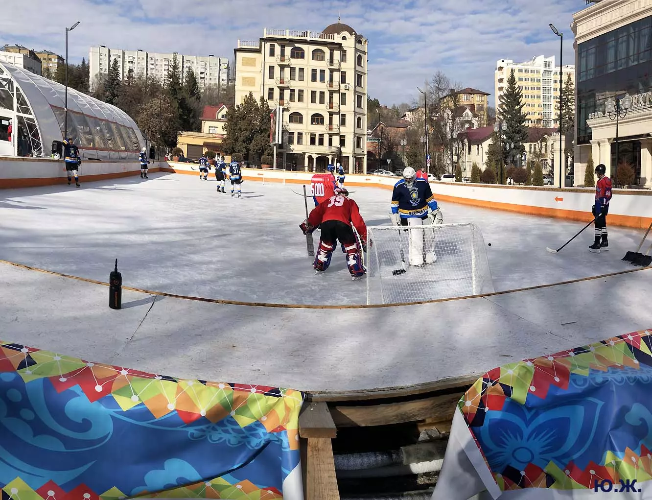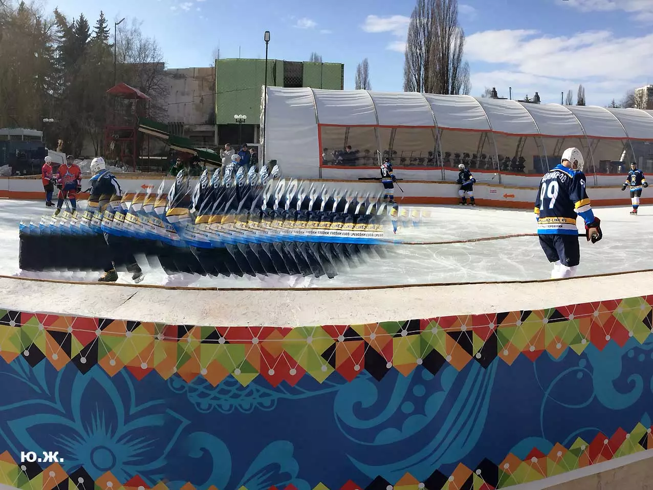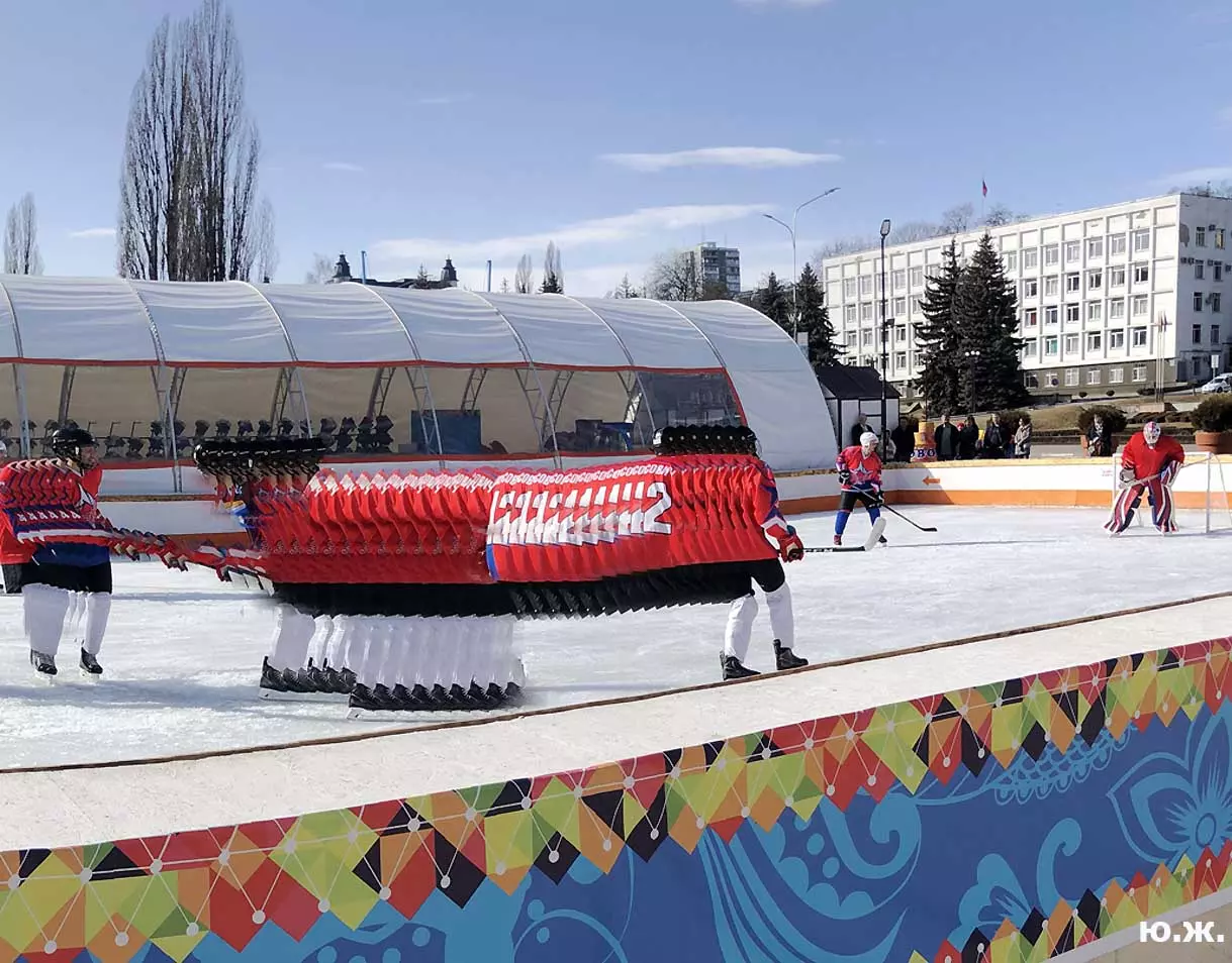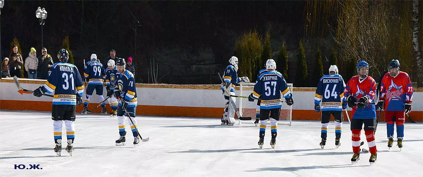 Вчера 23 февраля на новом ледяном катке, что рядом с цирком, в честь Дня Защитника Отечества, был проведен товарищеский матч по хоккею с шайбой на льду. Играли настоящие мужчины, среди которых было много тех, кому и серьезно за пятьдесят.
