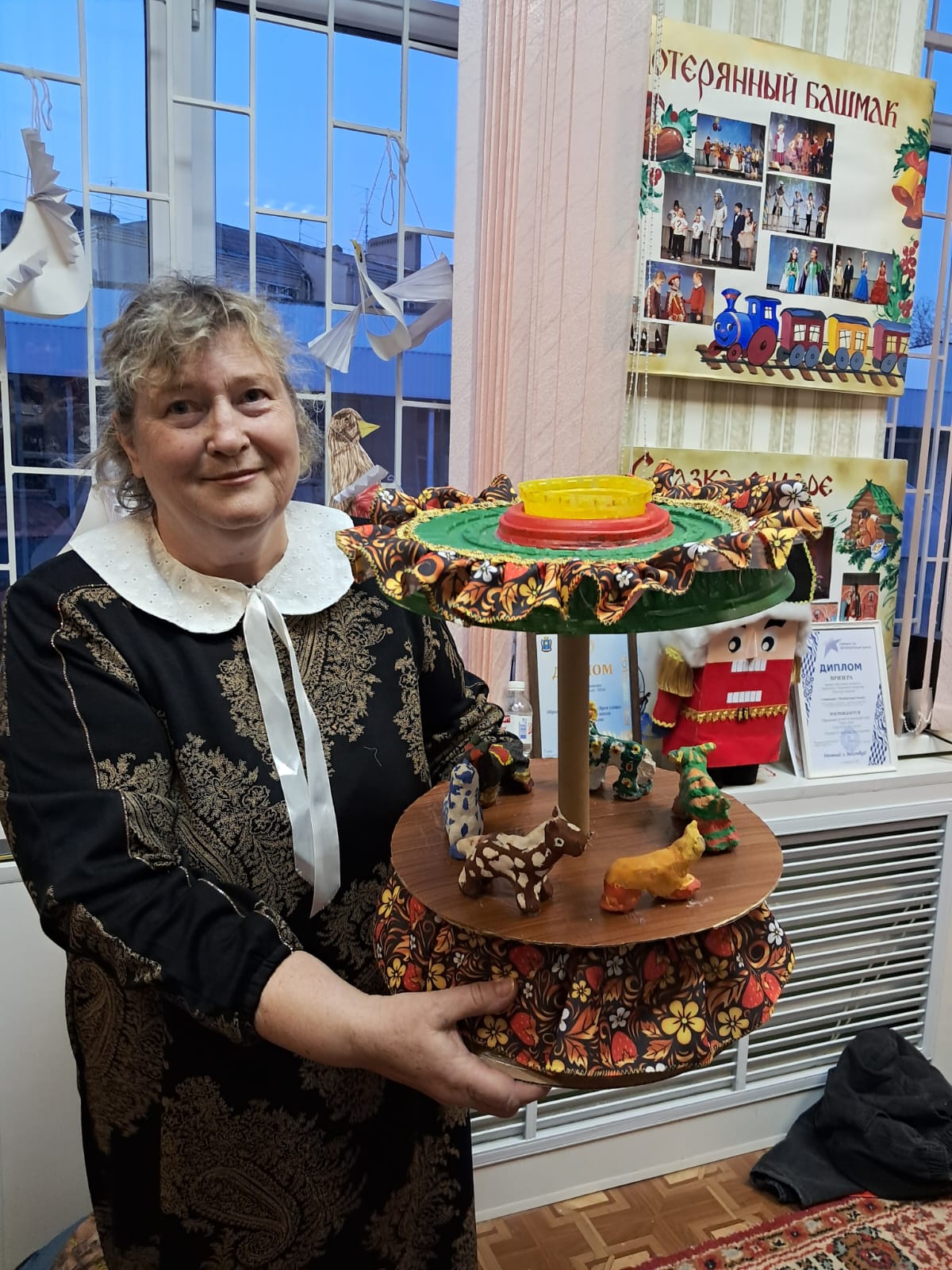 Анна Георгиевна Кузнецова, руководитель Центра, режиссёр-постановщик детского театра, дала мне интервью, где поведала историю задумки музыкальной сказки под названием «Волшебное кольцо», это и была премьера №1.