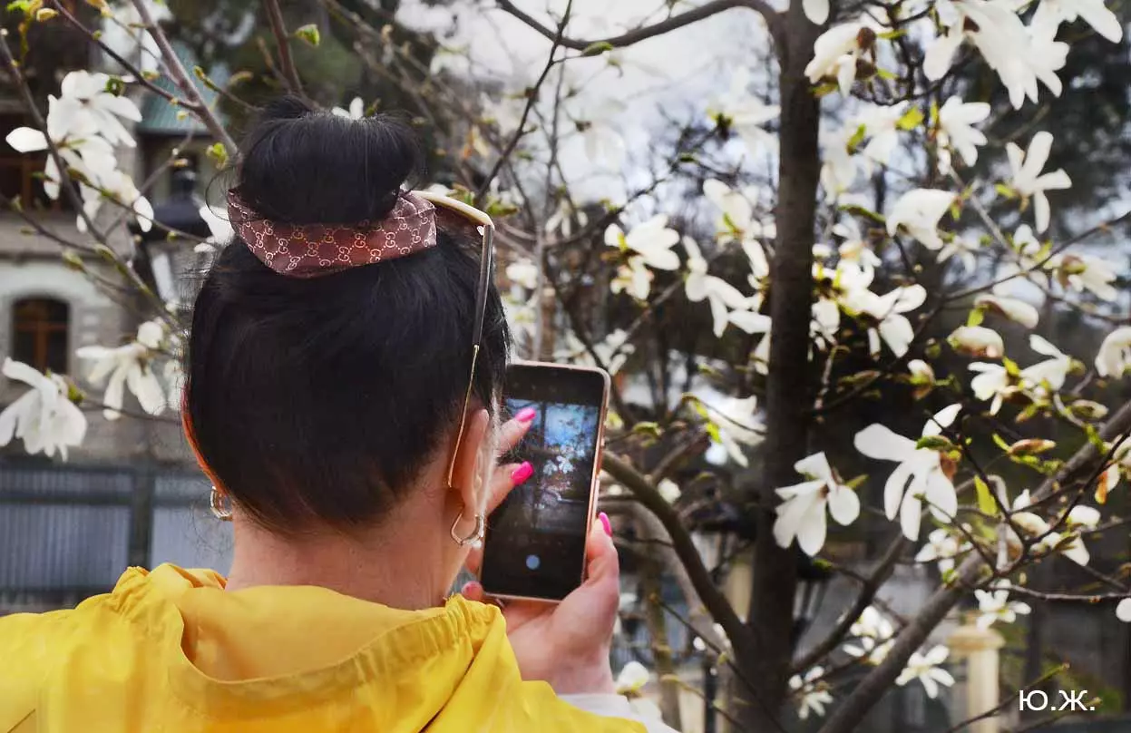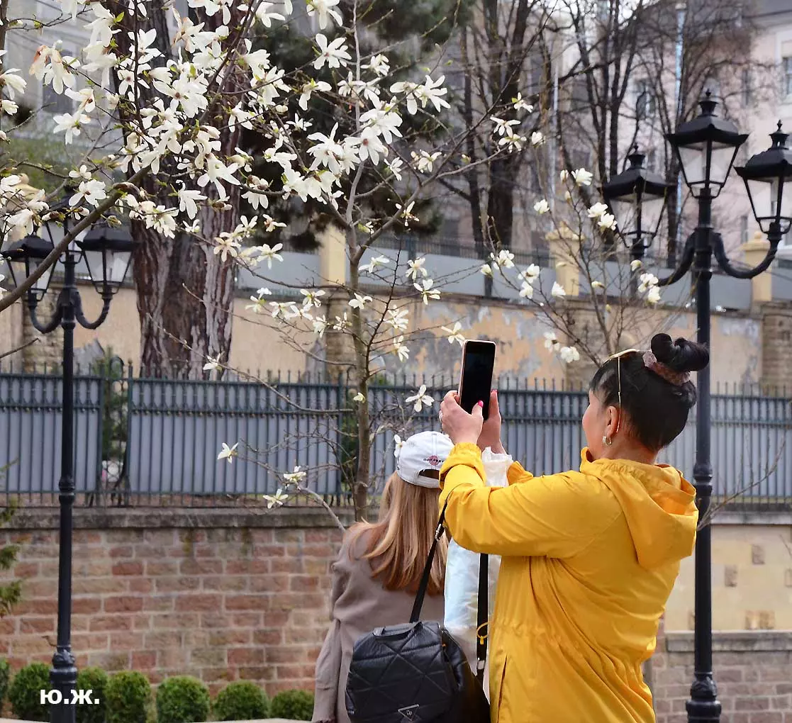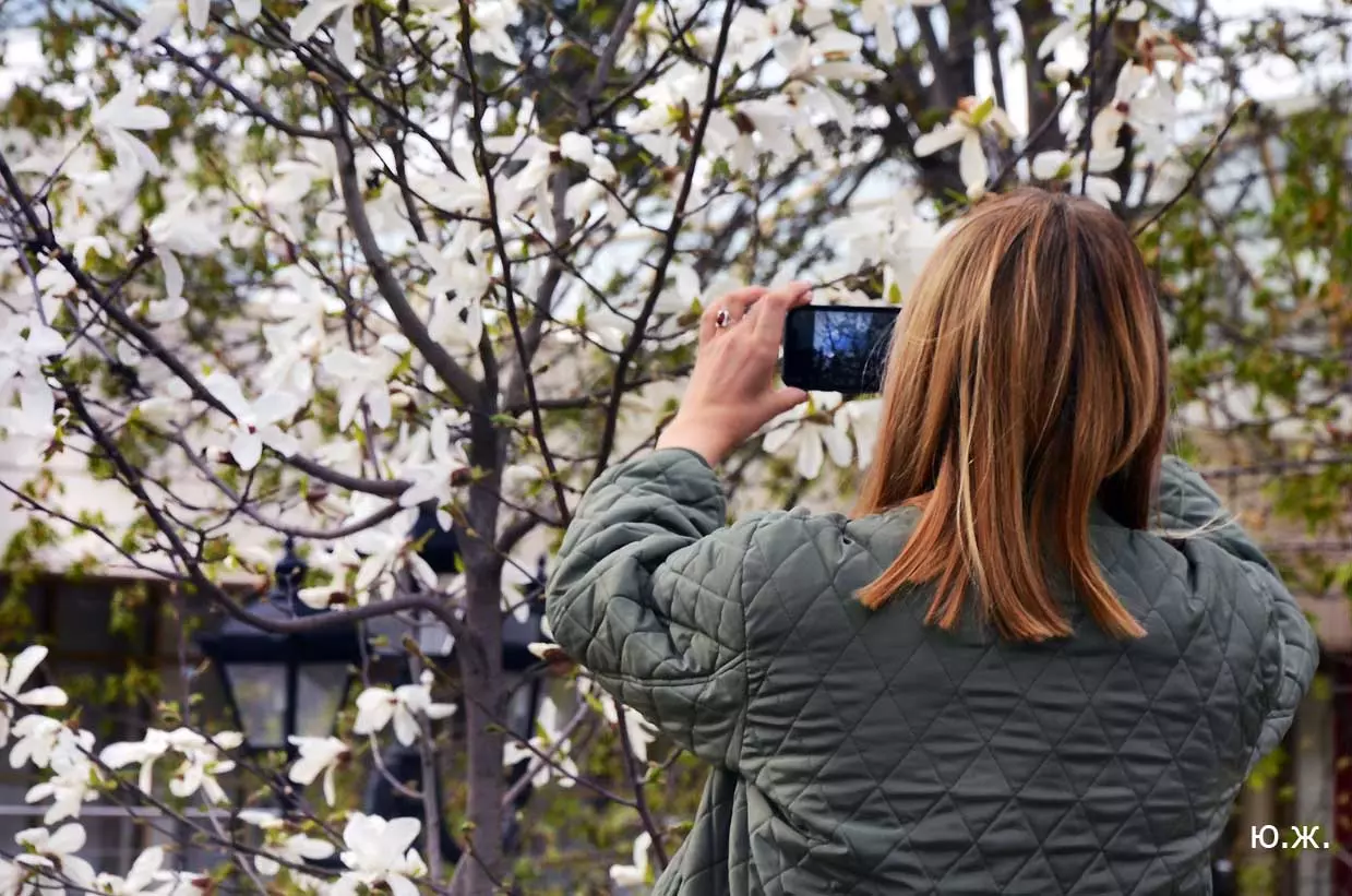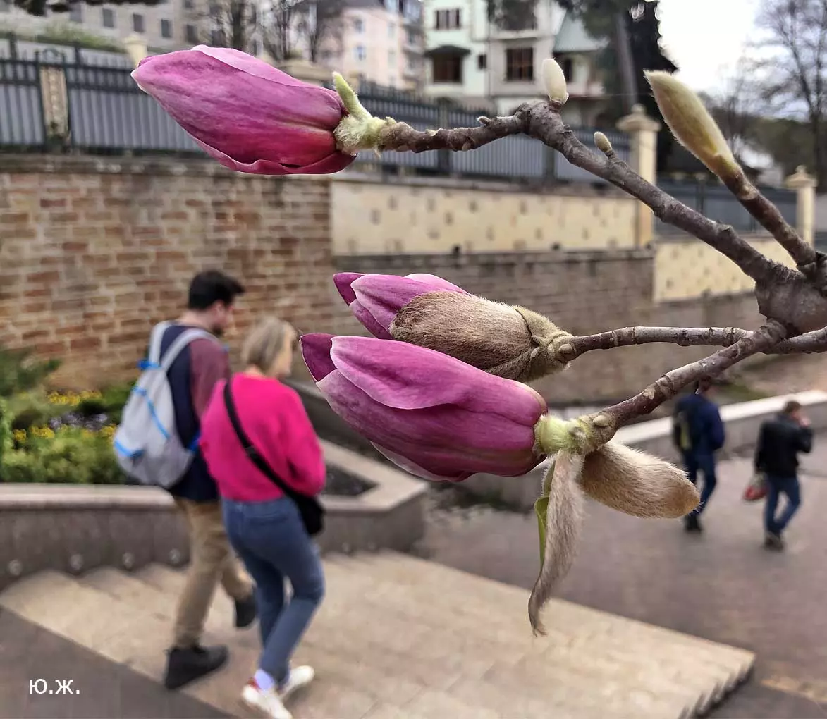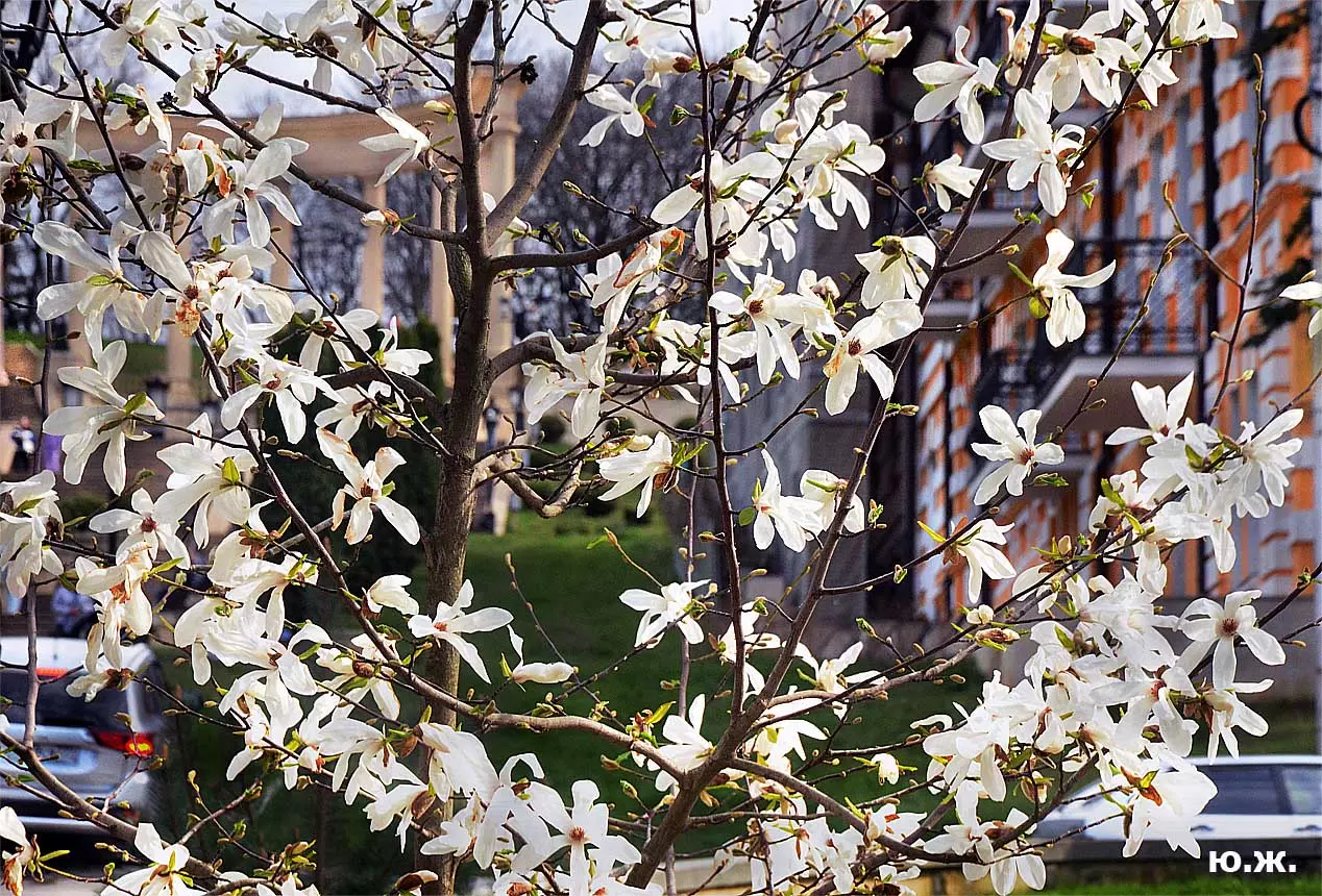 Ну, вот, друзья, в Кисловодске снова зацвели магнолии. У нас они уже пятый год. В прошлом году цветения не было: думаем, они зимой промерзли. Тогда мы очень переживали. Сейчас все в порядке. Деревца заметно подросли, цветы крупные белоснежные, на одном из деревьев — красивого ярко фиолетового цвета. Много зрителей, в основном курортников. Они с удовольствием фотографируют и цветы, и себя любимых на их фоне. Отсюда Каскадная лестница, снятая сквозь них, кажется усыпанной белыми звездами. А главное — у нас весна и цветут Магнолии.