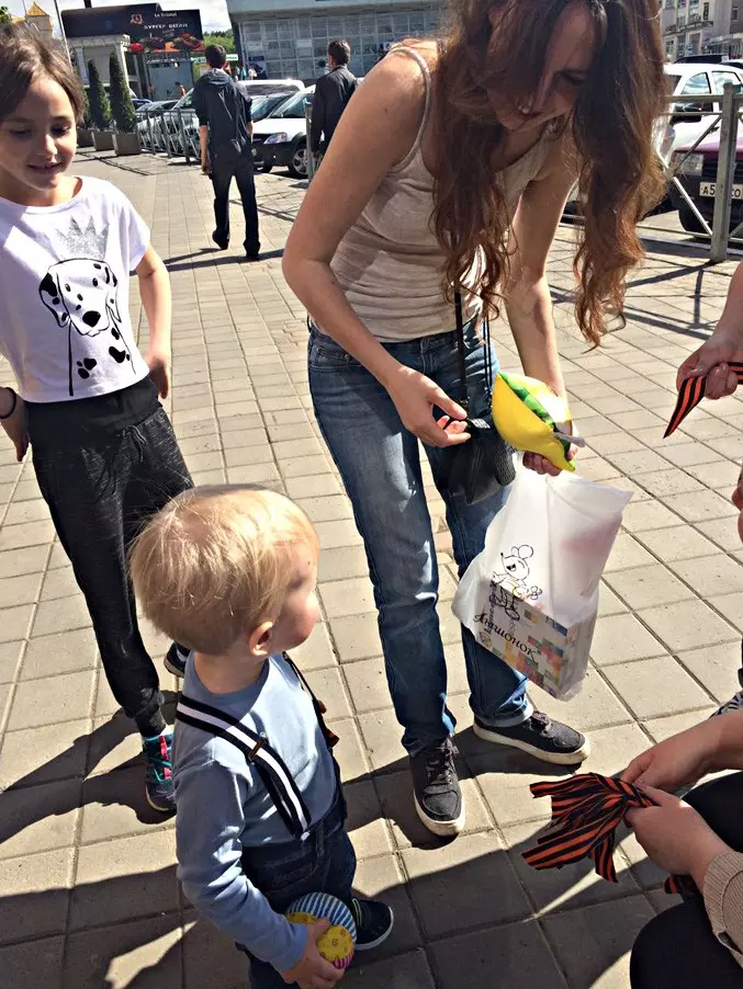 Автоинспекторы не только водителям, но и пешеходам выдавали Георгиевские ленты и объясняли, как их правильно крепить на одежде. И, конечно, также вручались памятки пешеходам и водителям, касающиеся соблюдения Правил дорожного движения и взаимного уважения на дороге. Наиболее активными участниками акции стали самые маленькие участники движения — дети. Они и активно дискутировали на тему Великой Отечественной войны, и наперебой рассказывали, о том как нужно вести себя в роли пешехода и велосипедиста.