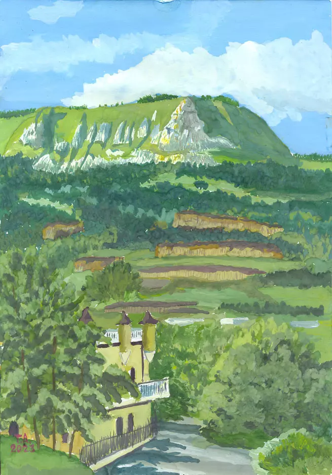 «Летний пейзаж», «Боргустанские горы», гуашь, 2023 г.