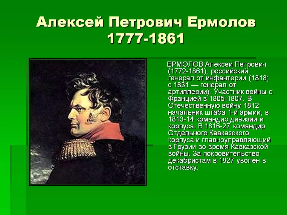 Назначенный в 1816 году командиром Отдельного Грузинского корпуса, управляющим по гражданской части на Кавказе и в Астраханской губернии генерал-лейтенант Алексей Ермолов раз