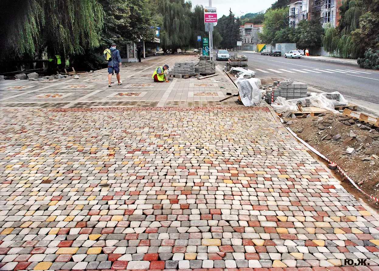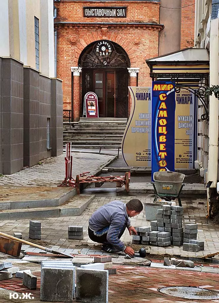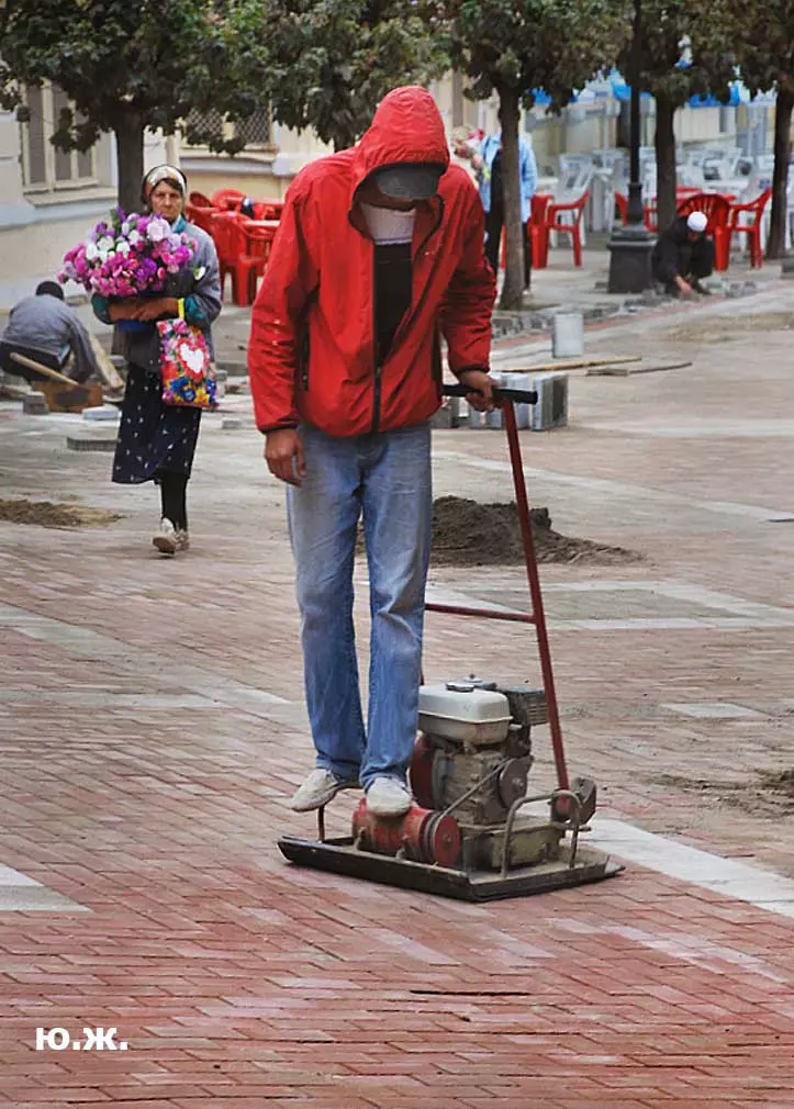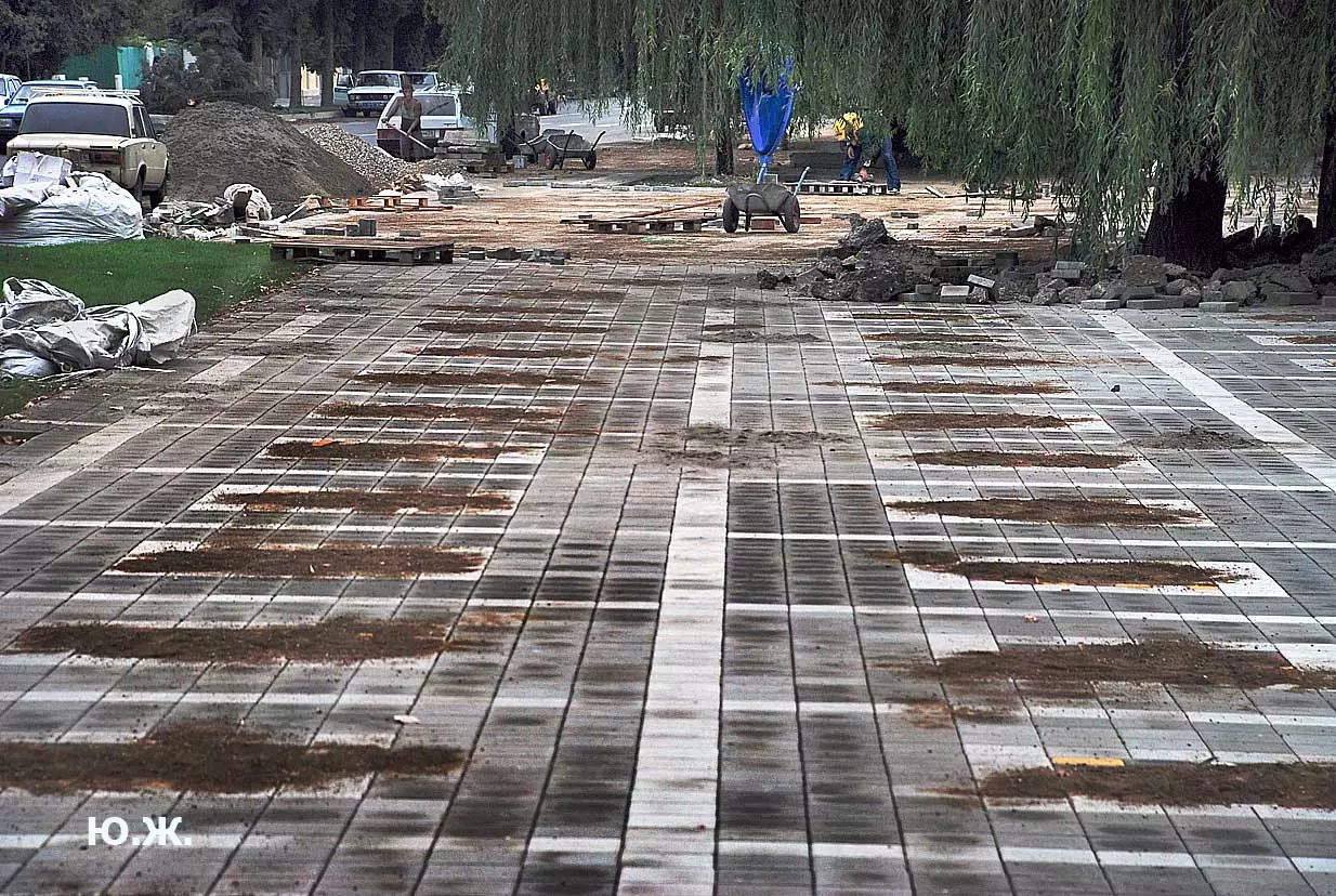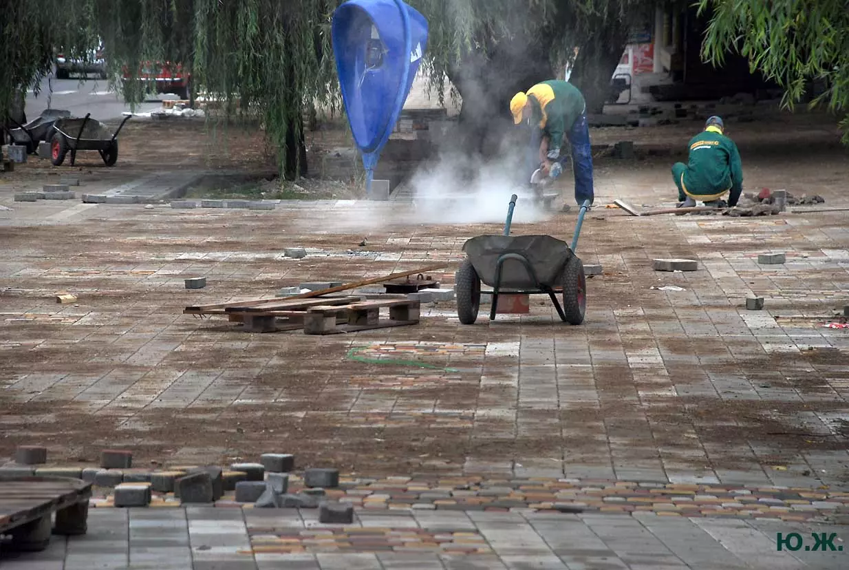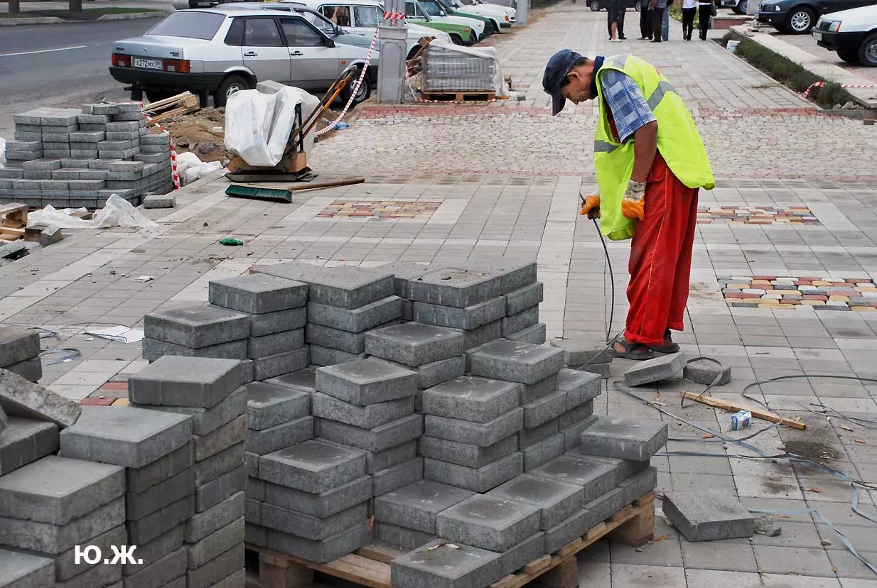 Тем временем в Кисловодске работы в разгаре, как в разгаре и курортный сезон. Это продолжается не один месяц, отдыхающие научились ловко лавировать между препятствиями и уворачиваться от искр и пыли «болгарок», режущих камень. А желто-зеленые комбинезоны в летнюю жару оказались неудобными и постепенно заменялись на майки и т.п.