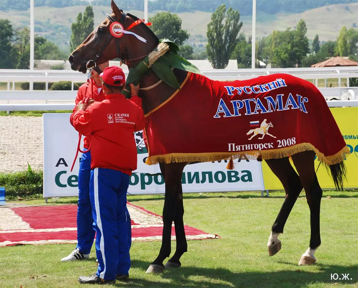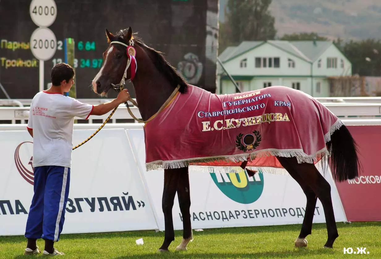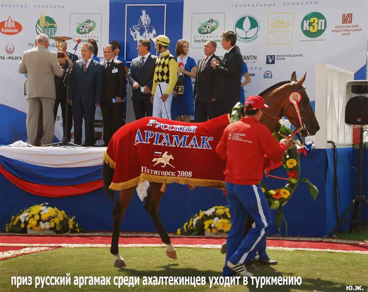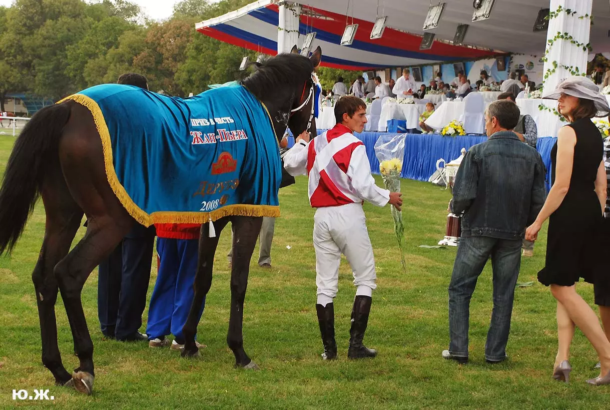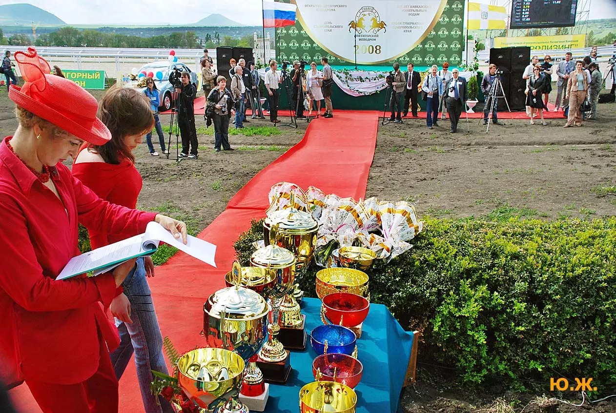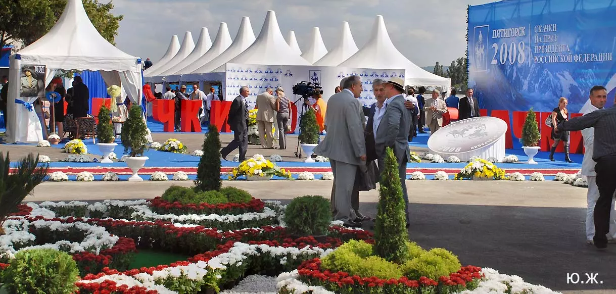А, главное, в Пятигорске, как и планировали, 7 сентября 2008 года состоялись скачки на приз Президента РФ. Было проведено 11 скачек, и в каждой были серьезные призы. Победитель Президентской скачки жеребец Паландер под седлом Андрея Джокленко выиграл три миллиона рублей и красивую скульптуру работы Е.А. Лансере (1848-1886гг.), копию которой из посеребренной бронзы и оникса выполнил его внук , талантливый скульптор Евгений Лансере. Остальные призы были полтора миллиона и по пятьсот тысяч рублей, и к ним великолепные роскошные кубки. См. фото.