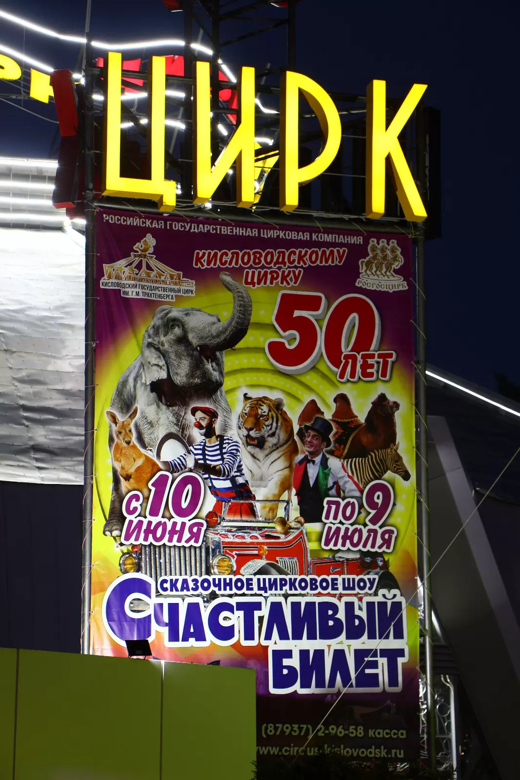 Даже в ночное время наш кисловодский слон, несмотря на сладкий сон, приглашает всех вытянуть счастливый билет. Осталось всего 2 представления «Итальянского цирка Togni», а это — реальная возможность увидеть экзотических животных, привезённых с пяти континентов. Не упустите её, купив билет на шоу с итальянским колоритом «Счастливый билет» http://www.circus-kislovodsk.ru